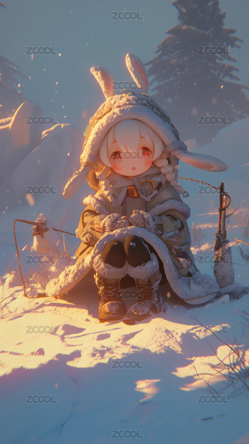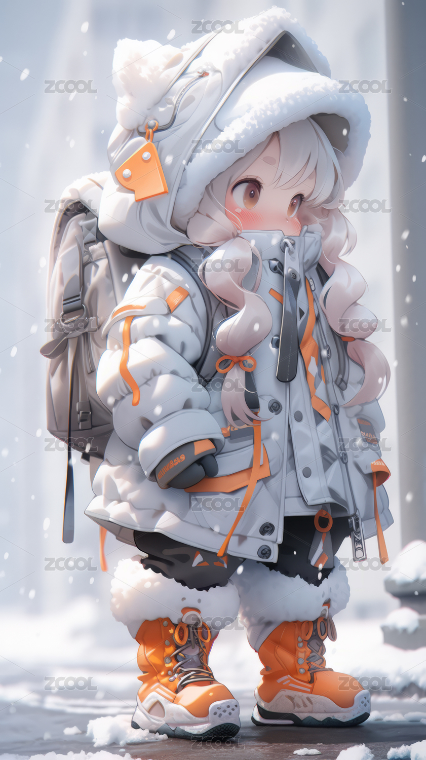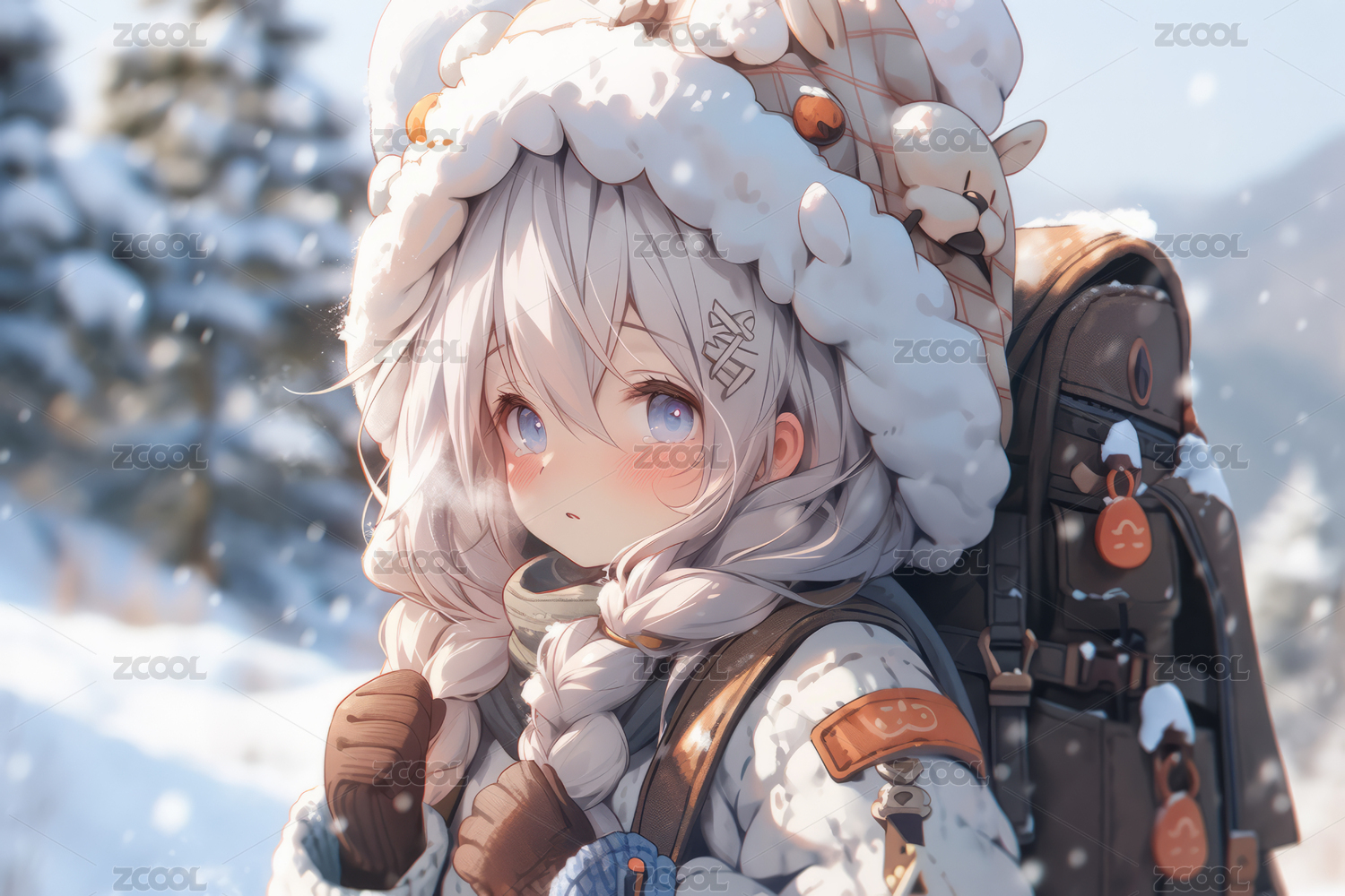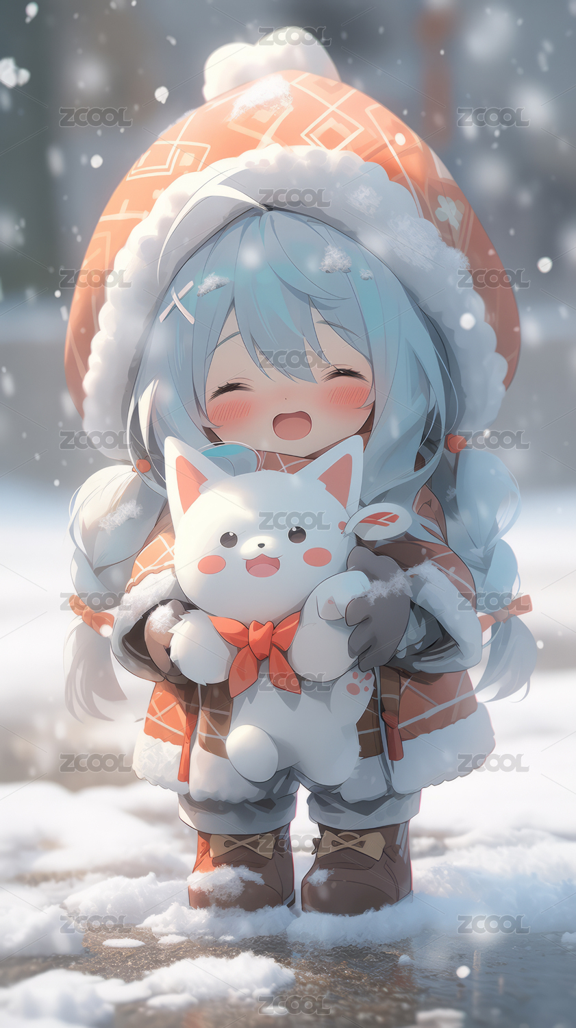 二次元,卡通,动漫,可爱,小动物,冬季,冬装,女孩,雪地,孤独者