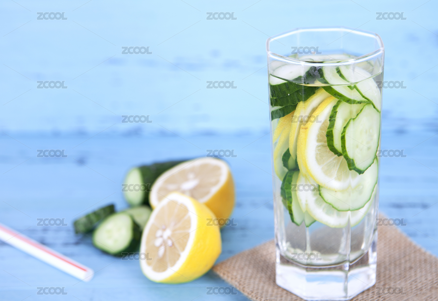 一杯清爽的柠檬黄瓜薄荷水