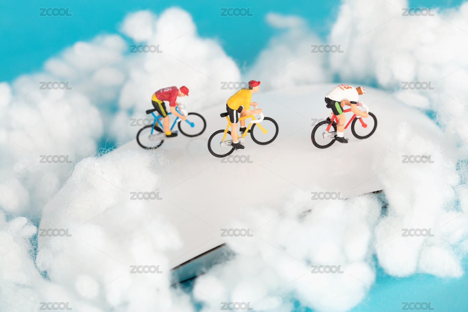 骑着赛车的微缩人偶模型行驶在书简书籍上