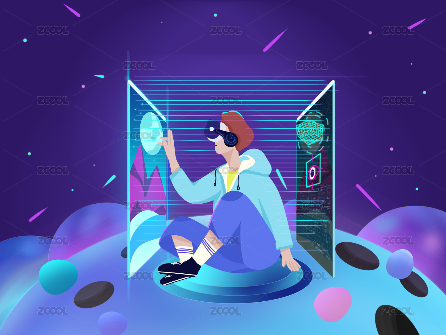 元宇宙插画人工智能高科技未来虚拟玩家模版