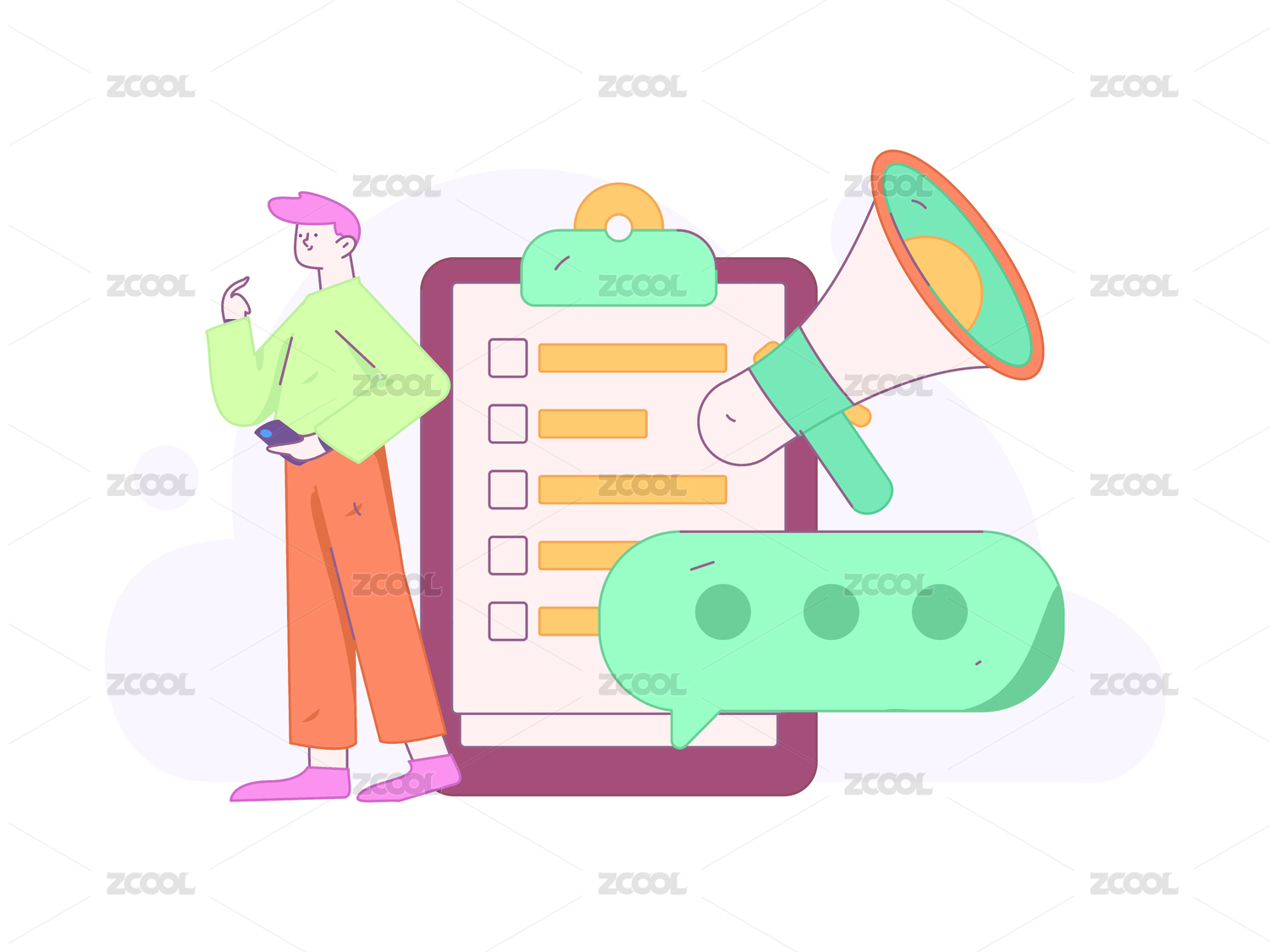 邀请好友进行问卷调查扁平矢量概念运营手绘