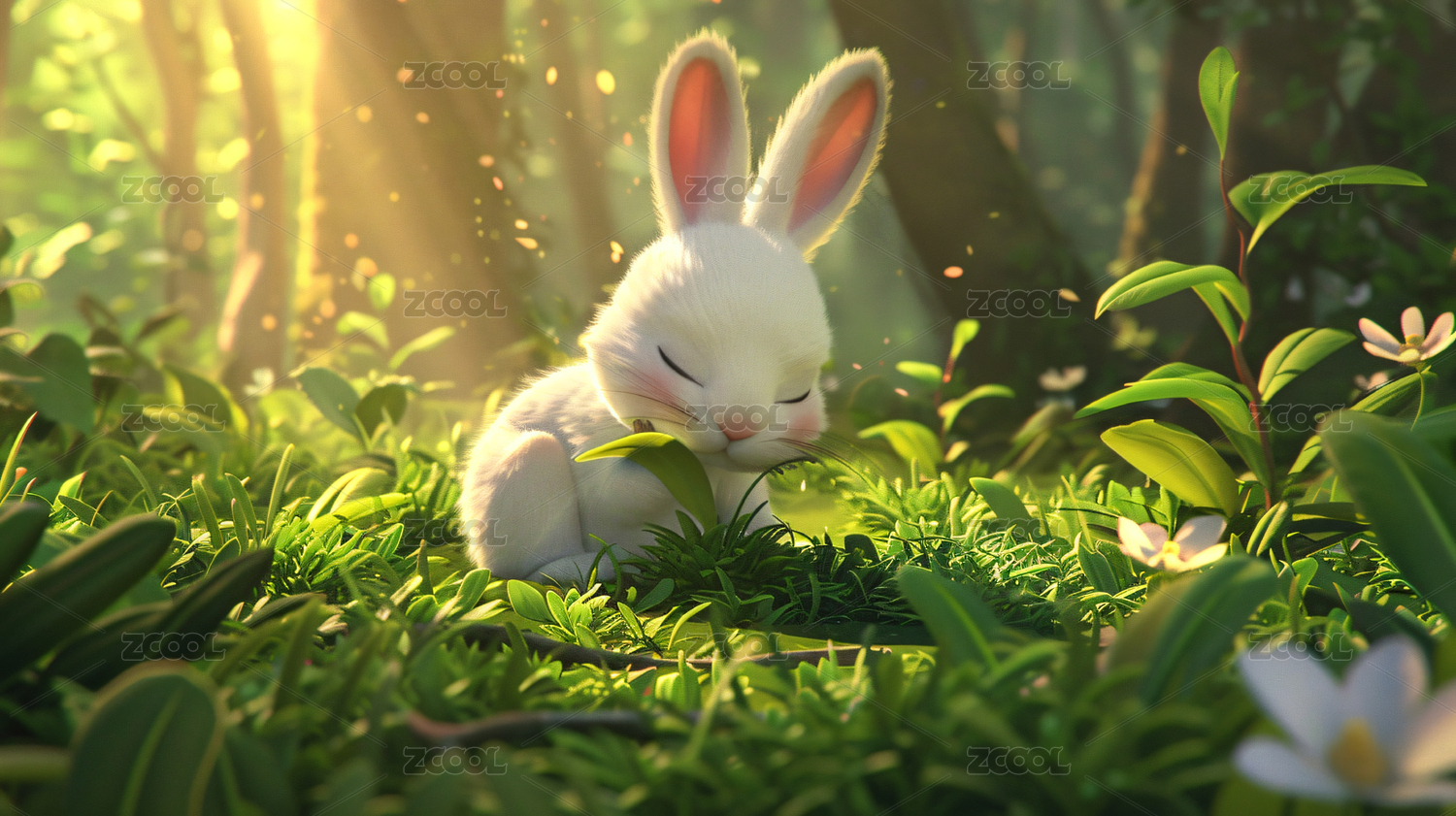 草地,森林,小白兔,兔子,卡通,插画,设计