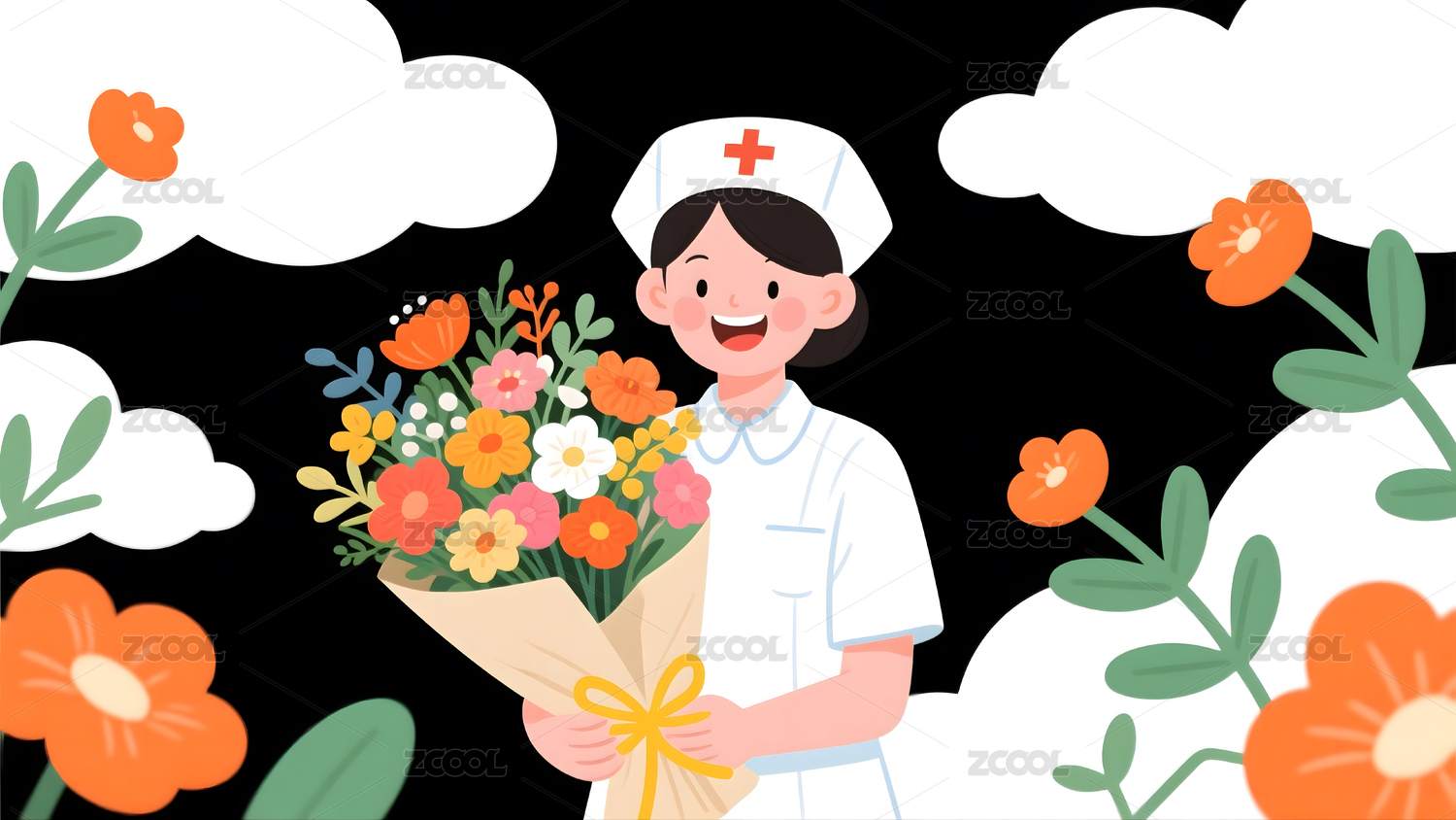 鲜花,花束,护士,医生,卡通,插画,花,护士节