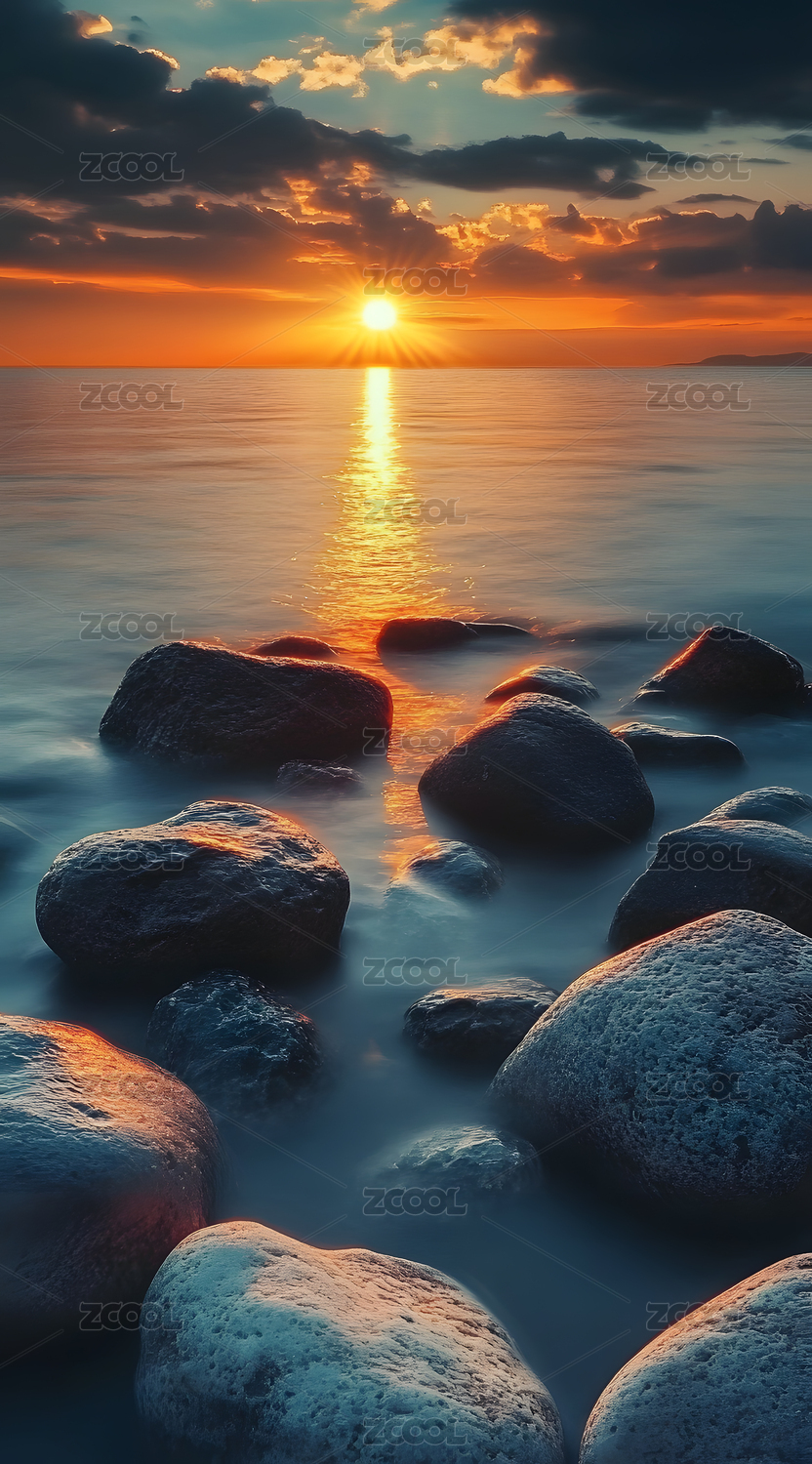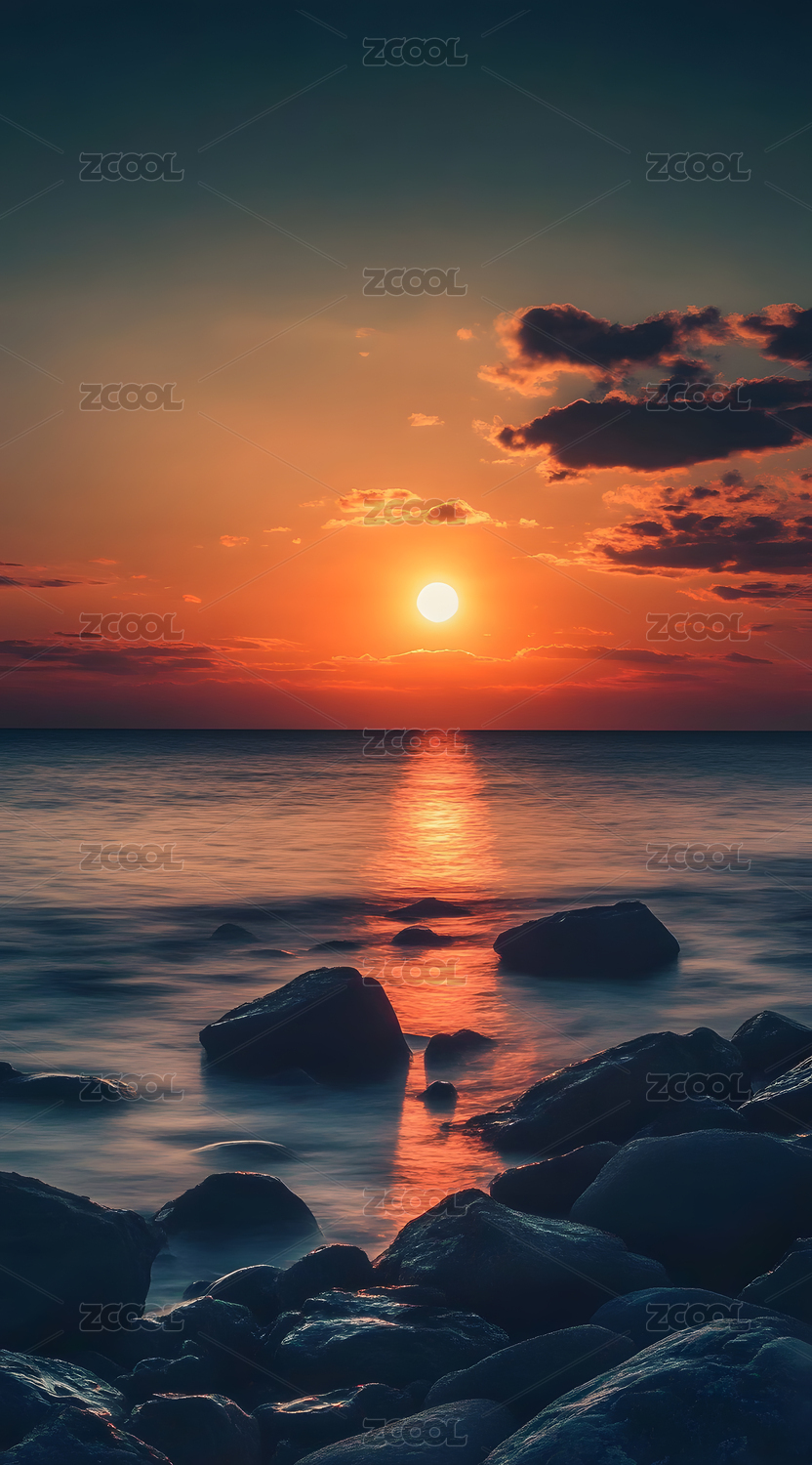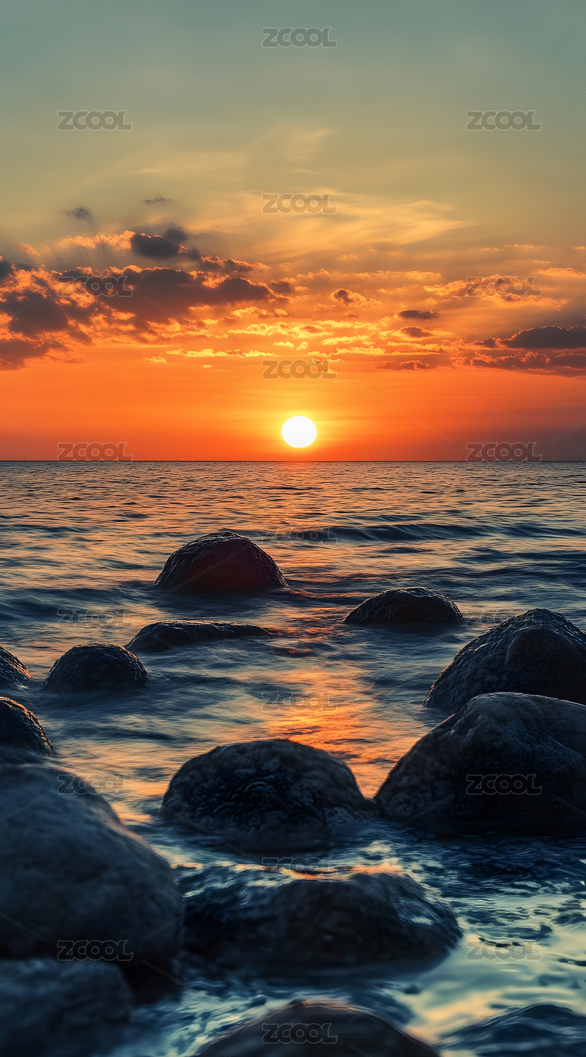 落日余晖海边场景