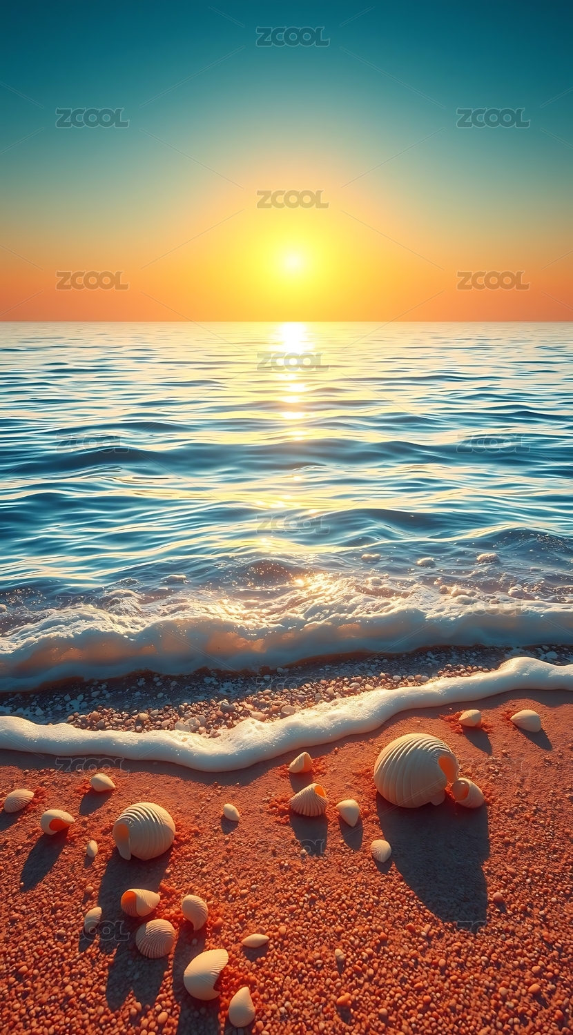 海滩上的贝壳与海浪