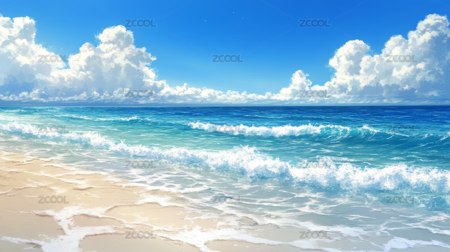碧海蓝天下的沙滩与波浪