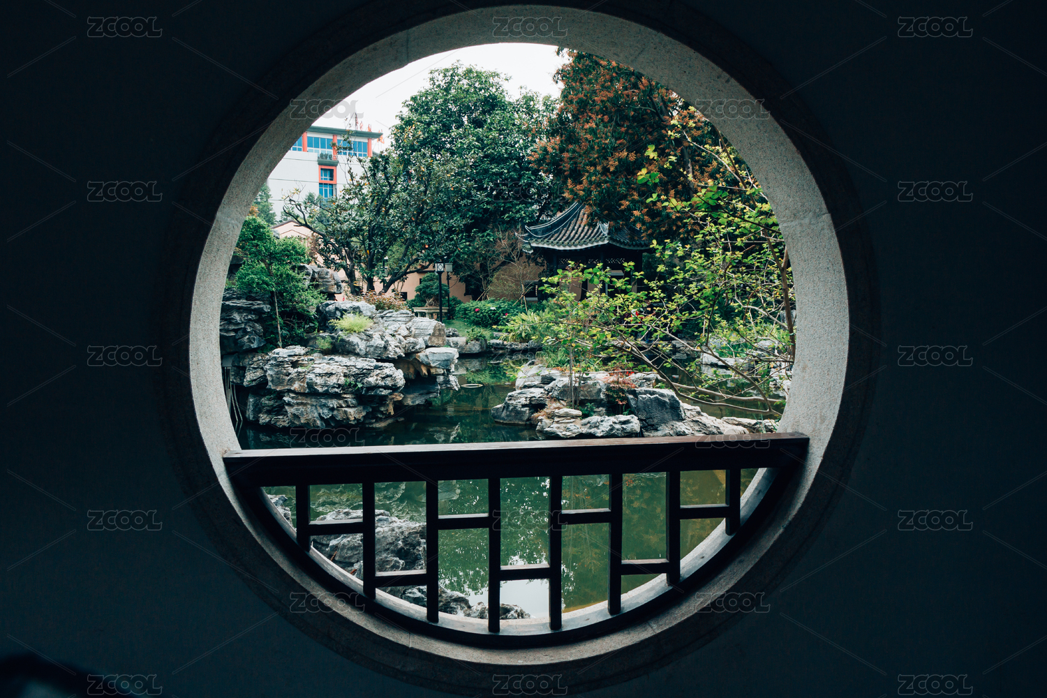 古典圆窗与竹林景观