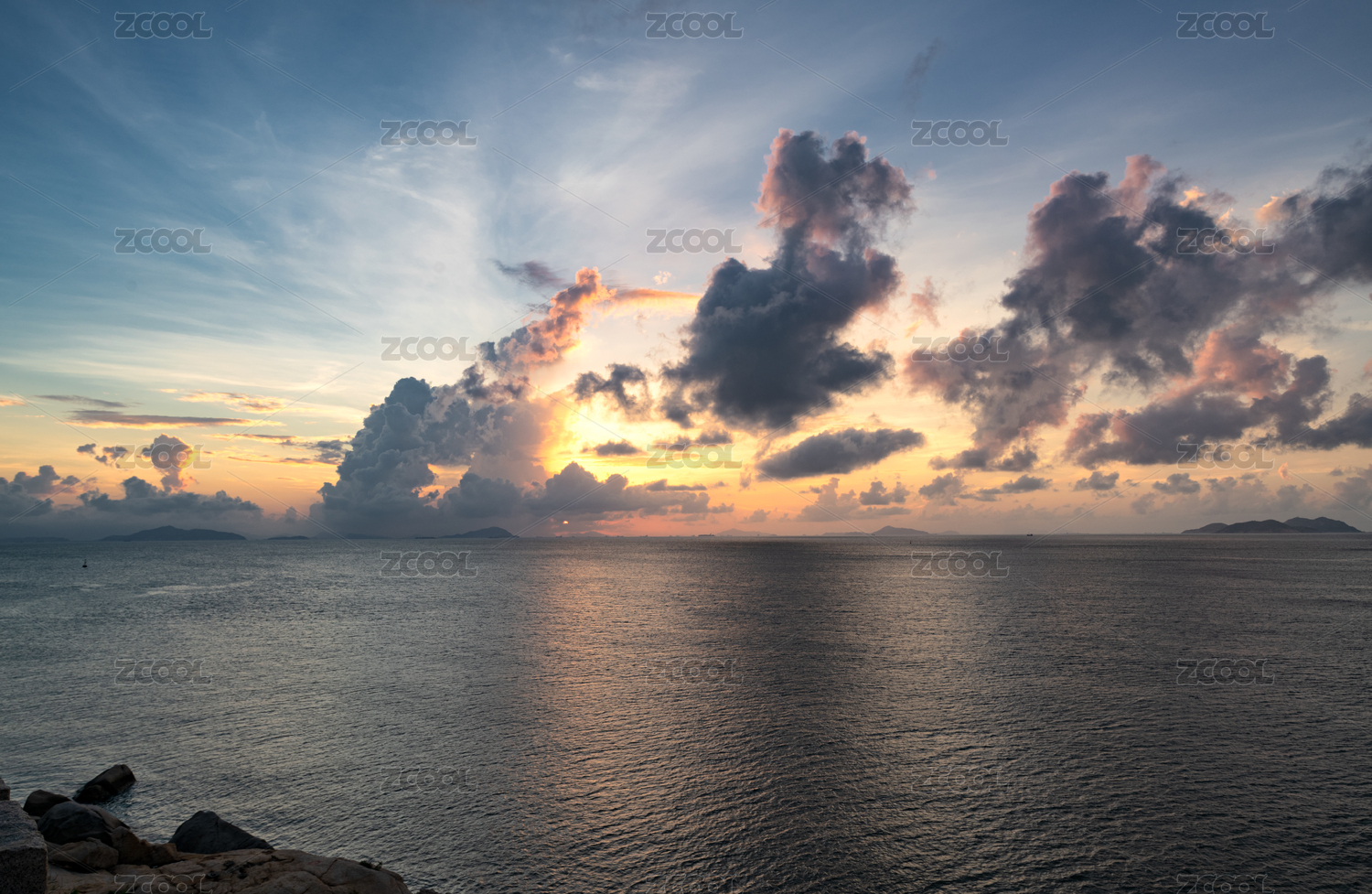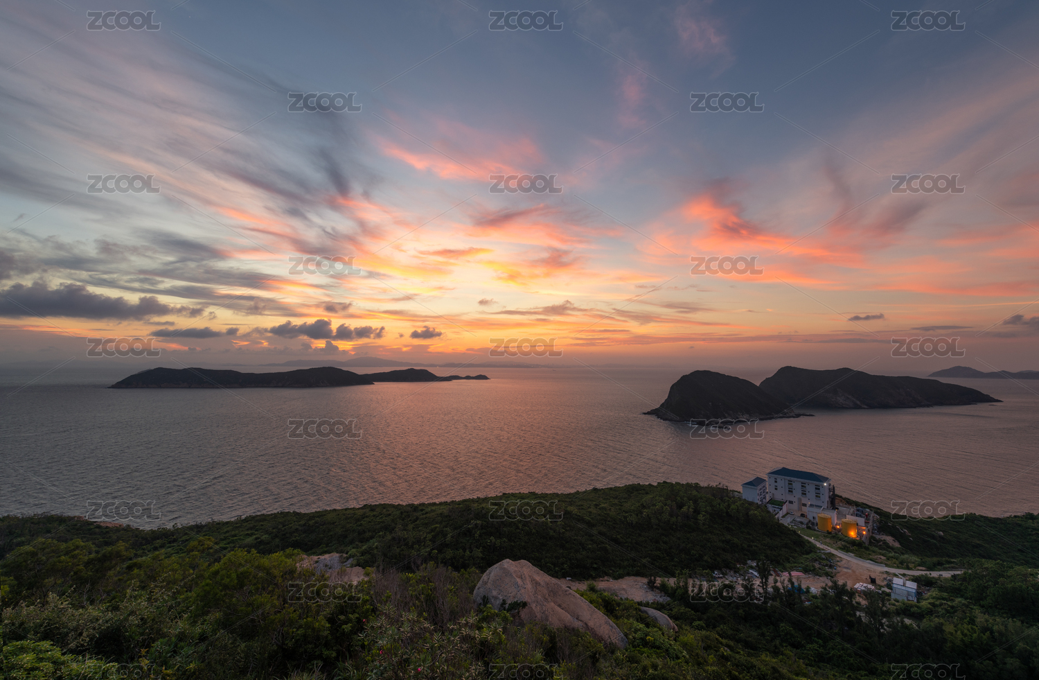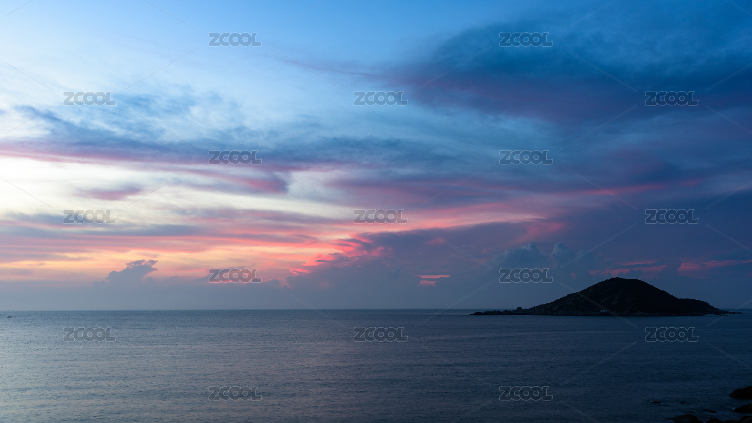中国广东珠海东澳岛日落时候的晚霞