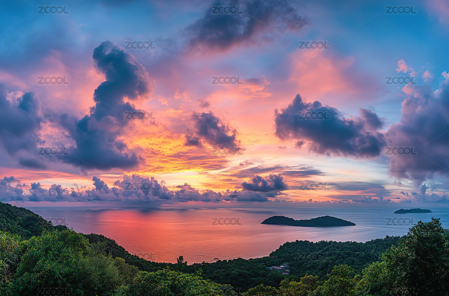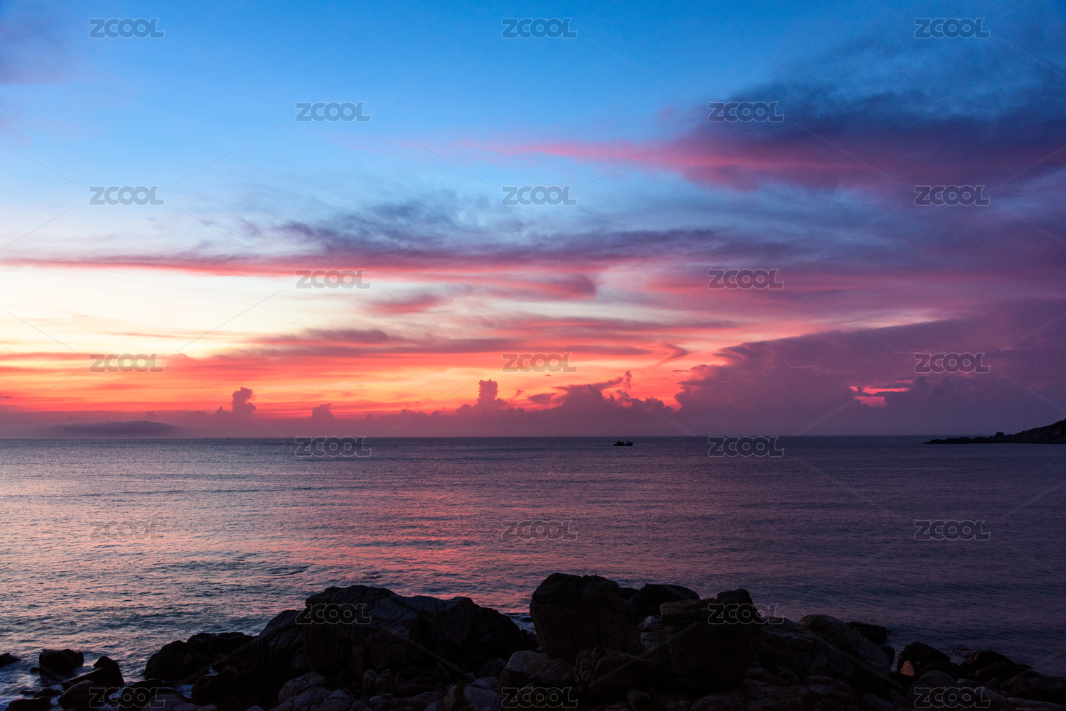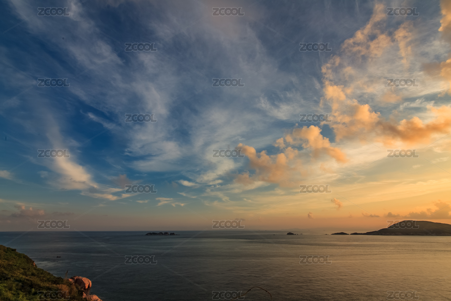 中国广东珠海东澳岛日落时候的晚霞