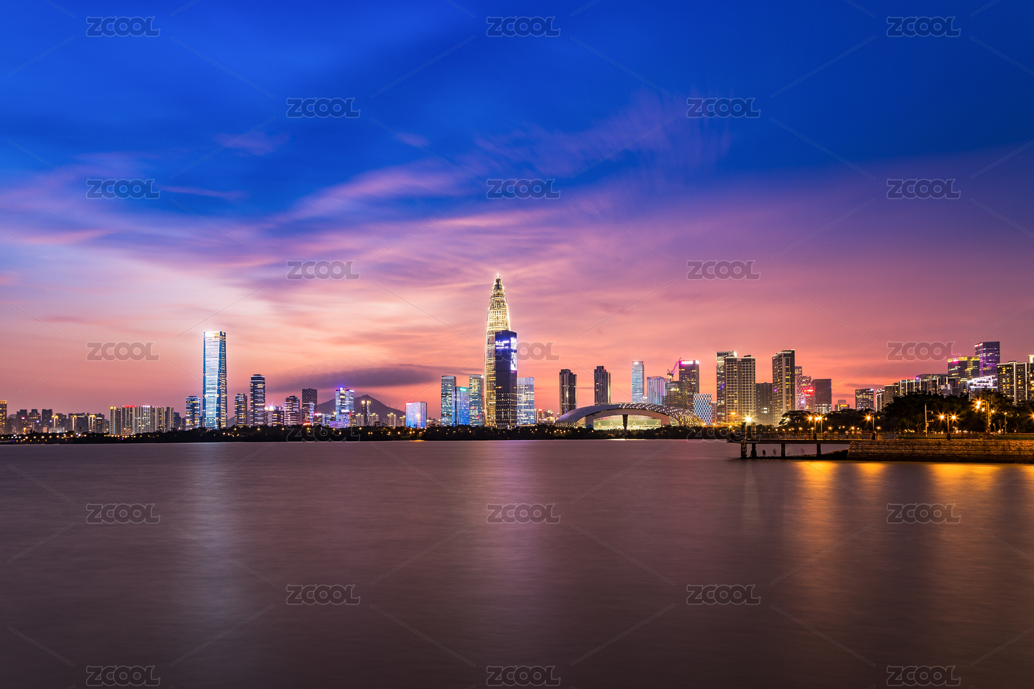 深圳,深圳湾,公园,夜景,灯光,华润大厦,深圳湾一号,春笋,春茧体育馆,广东省