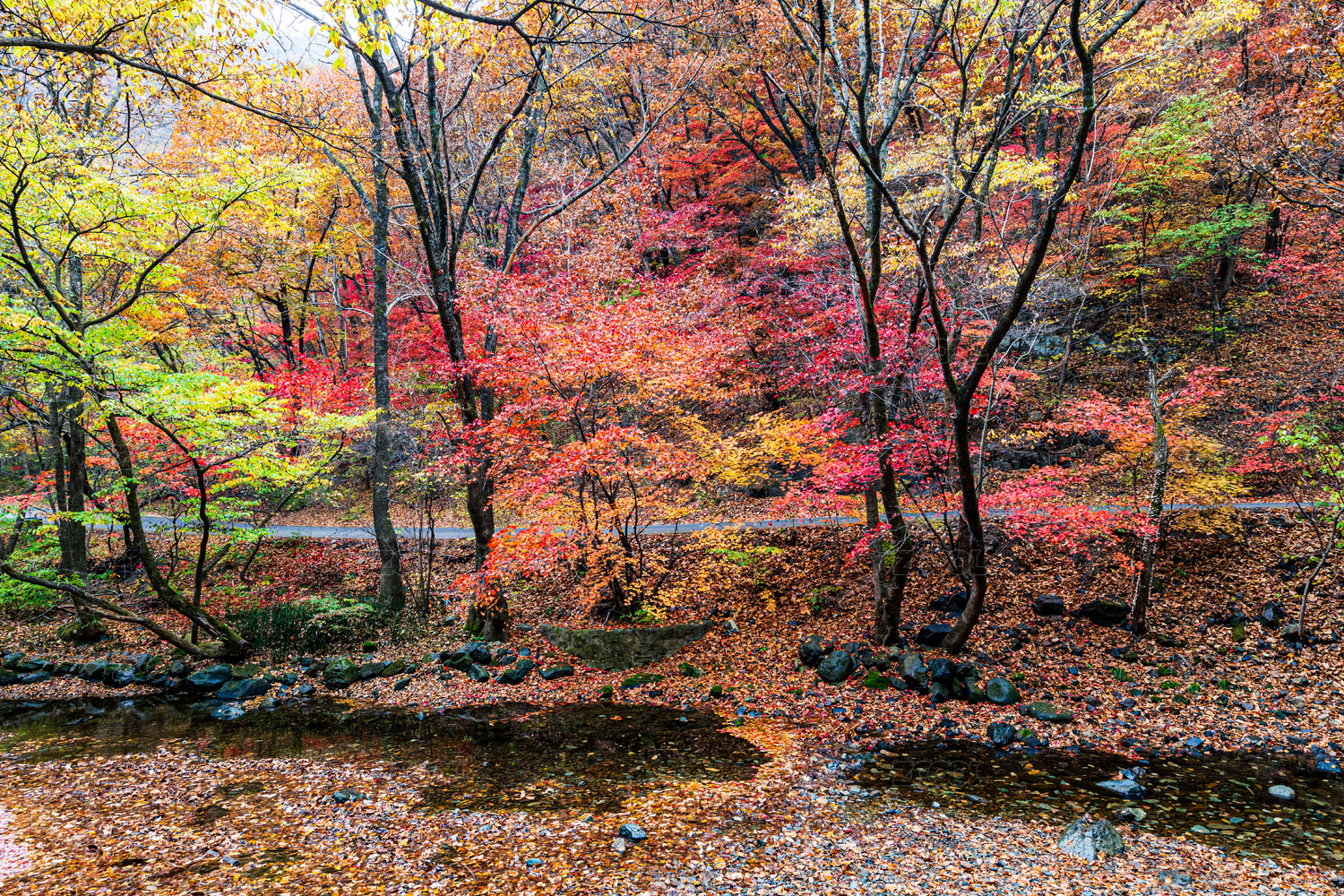 辽宁丹东蒲石河森林公园秋天的红叶谷