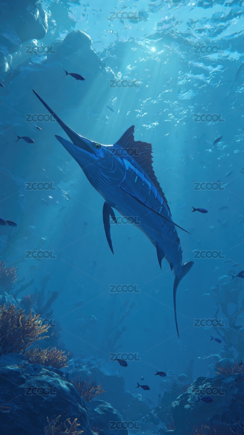 鲸鱼,鱼群,海底,蓝鲸,女孩,童话,海洋,深海,文艺,温馨