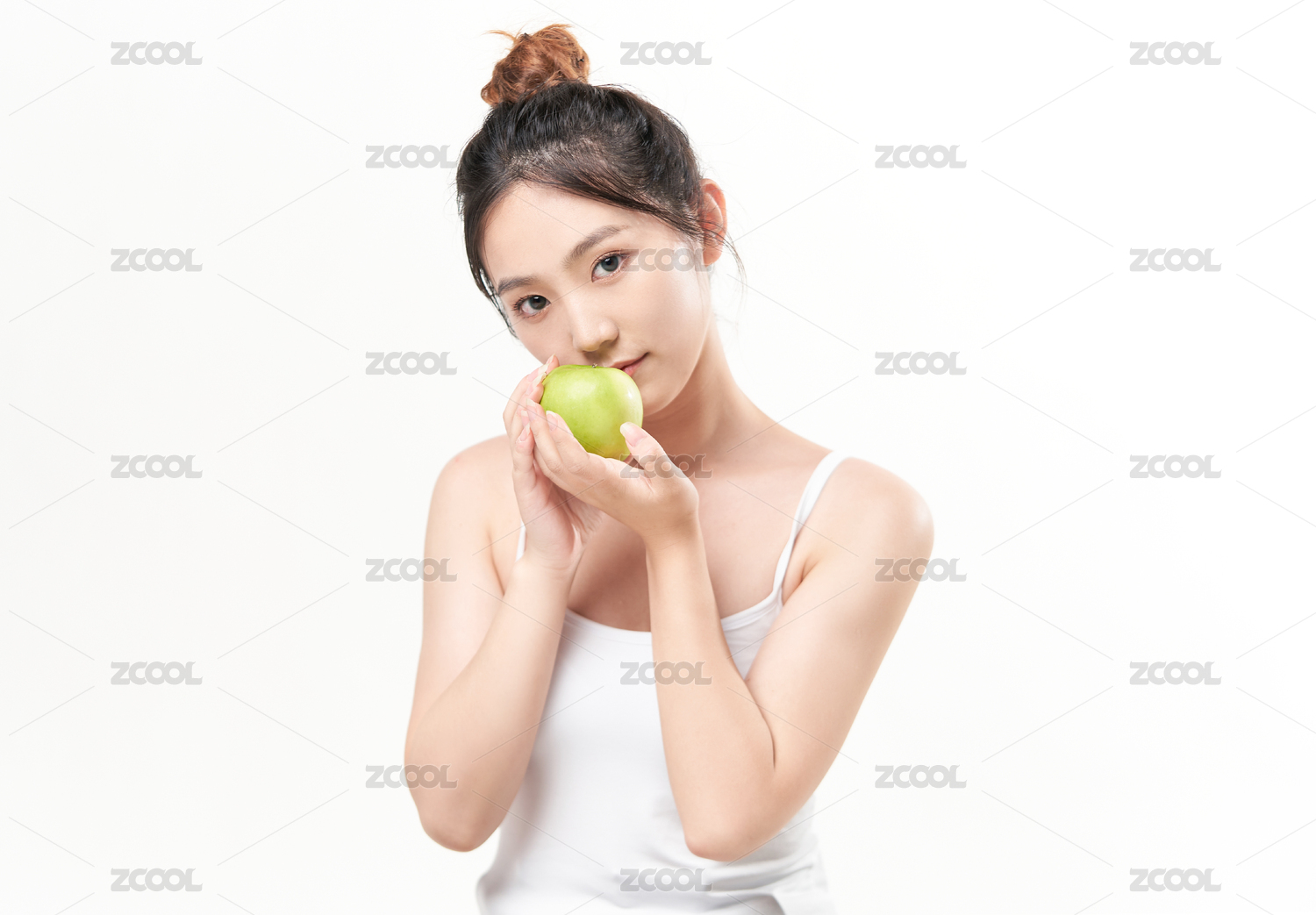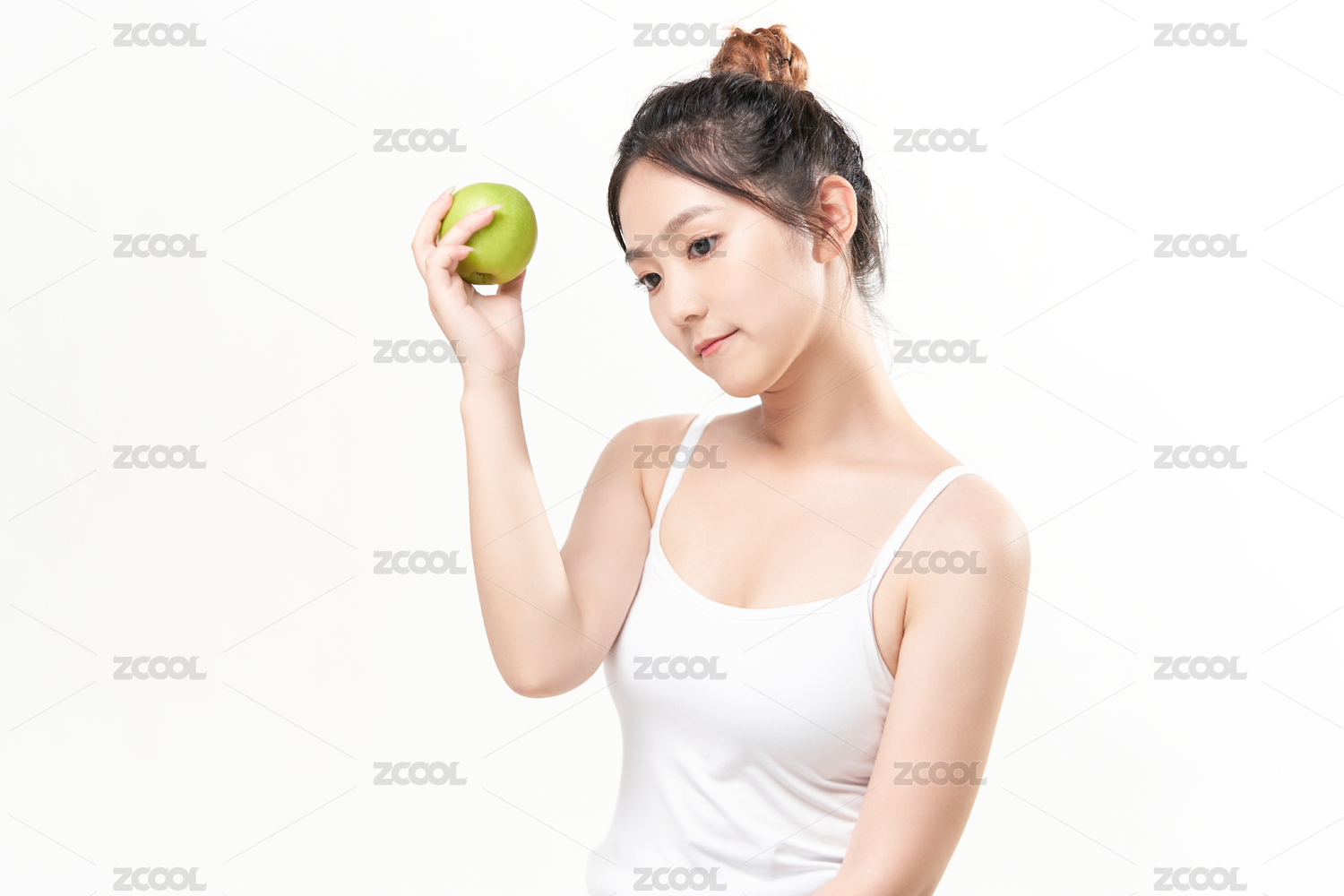 手捧青苹果的亚洲美女