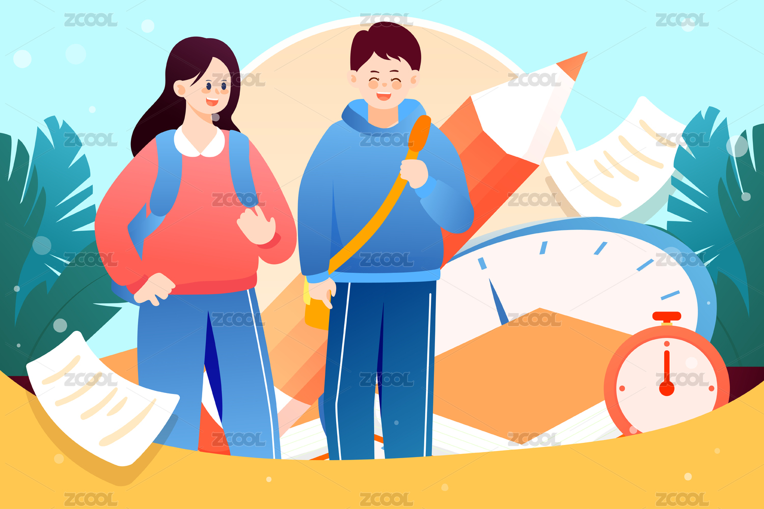 高考必胜倒计时中学生考试冲刺加油学习插画