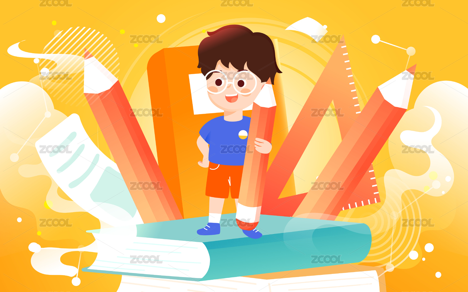 儿童学生学习教育概念插画