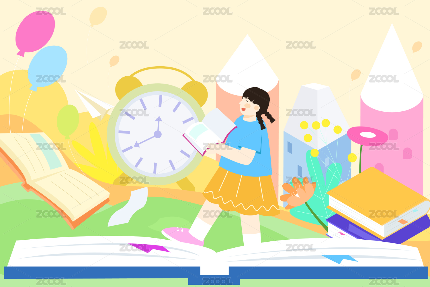 幼儿园儿童开学季学生上学读书学习教育插画