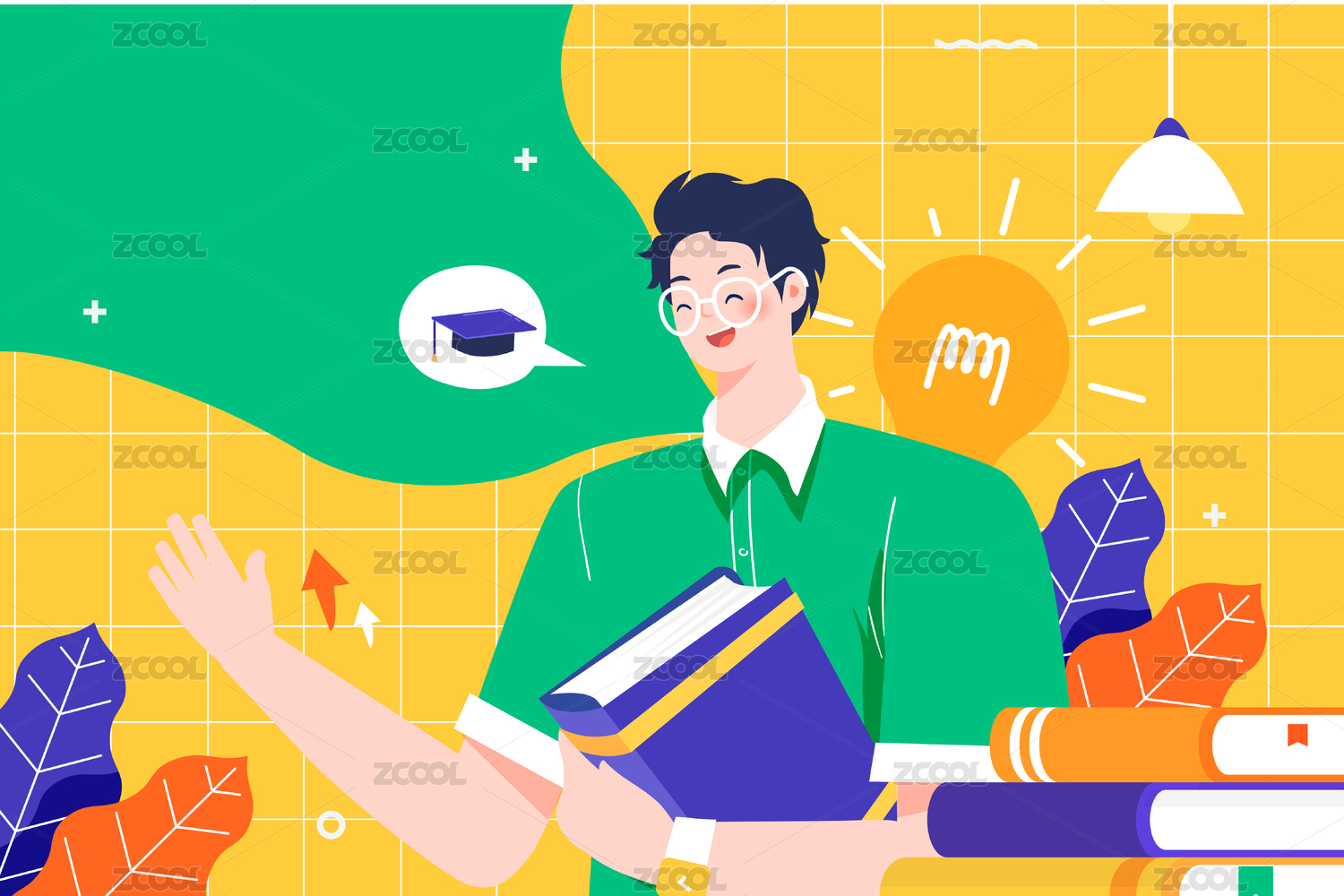 老师指导学习矢量插画