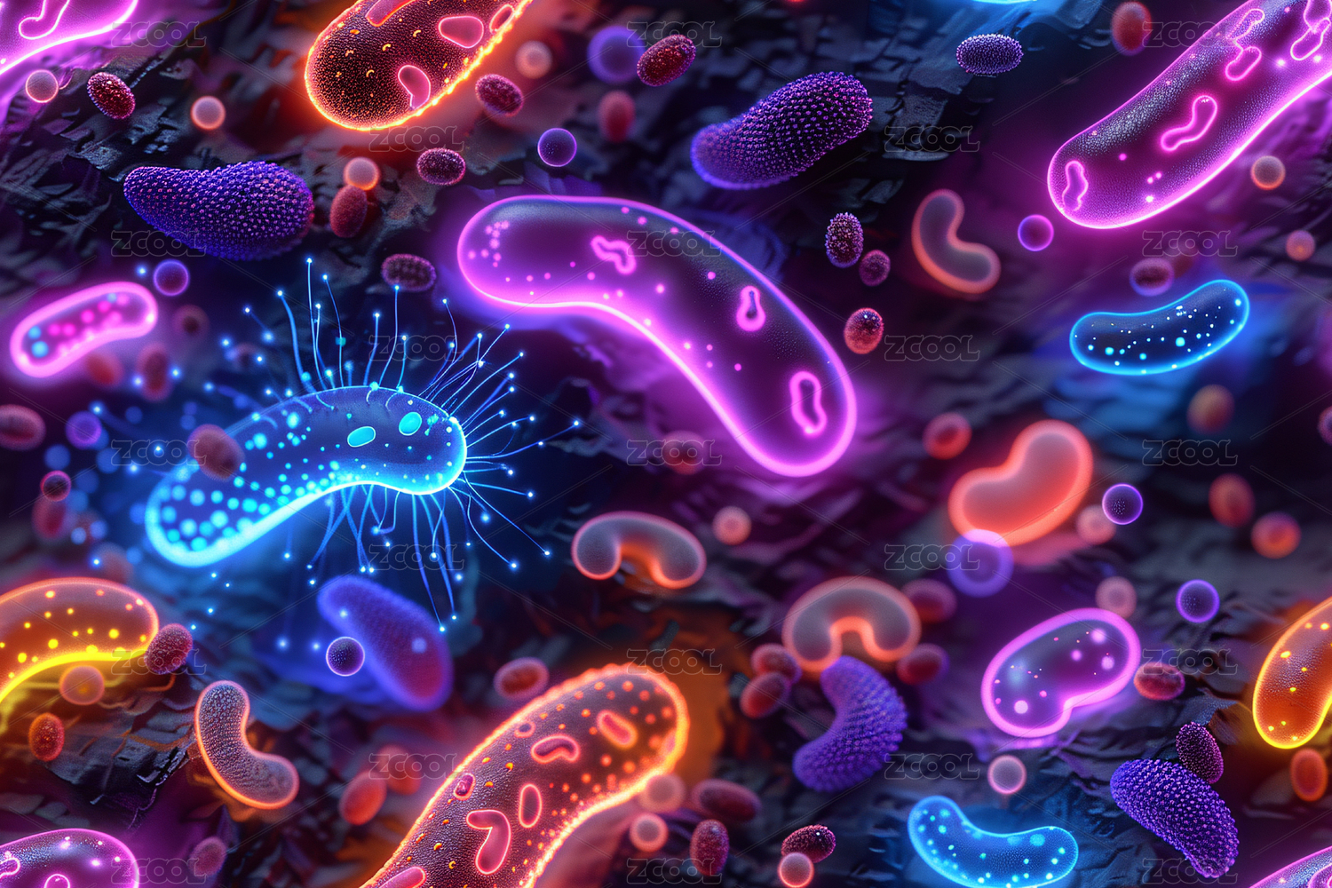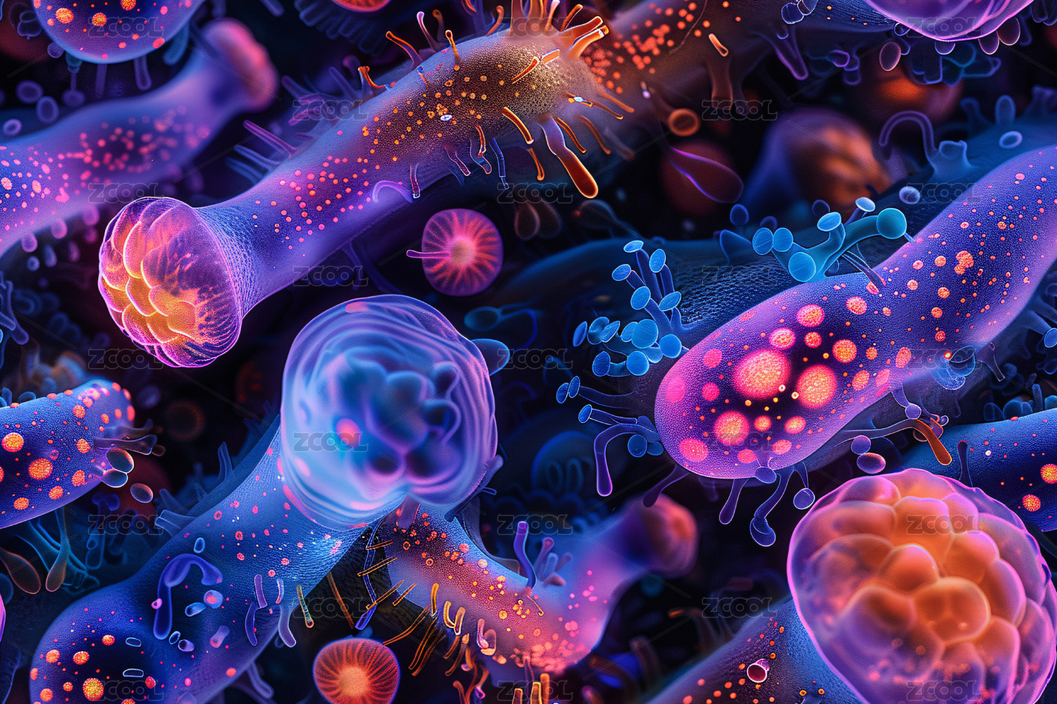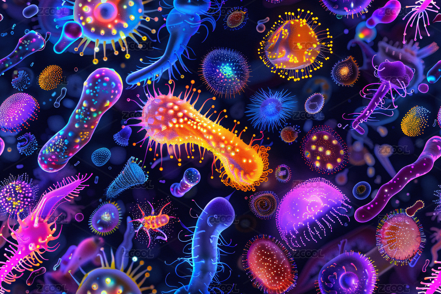 显微镜下细菌病毒特写海洋生物科学概念插图