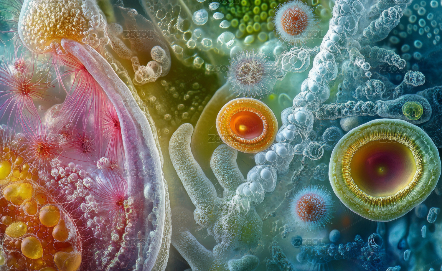 一群色彩斑斓的浮游生物,在显微镜下呈现出