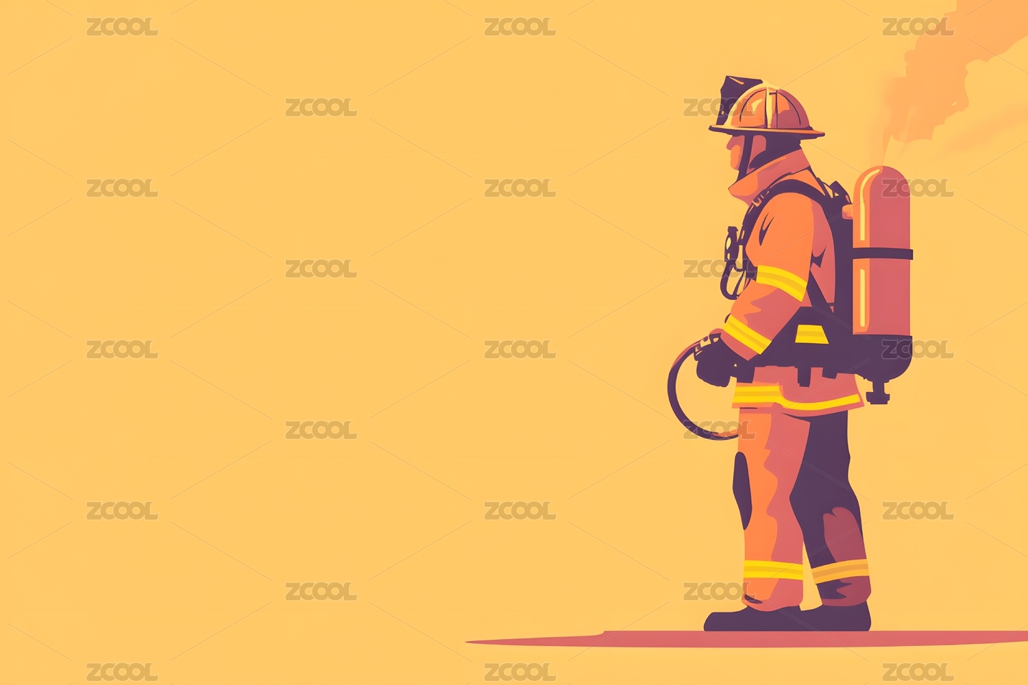 一个男消防员侧面扁平风消防元素插画