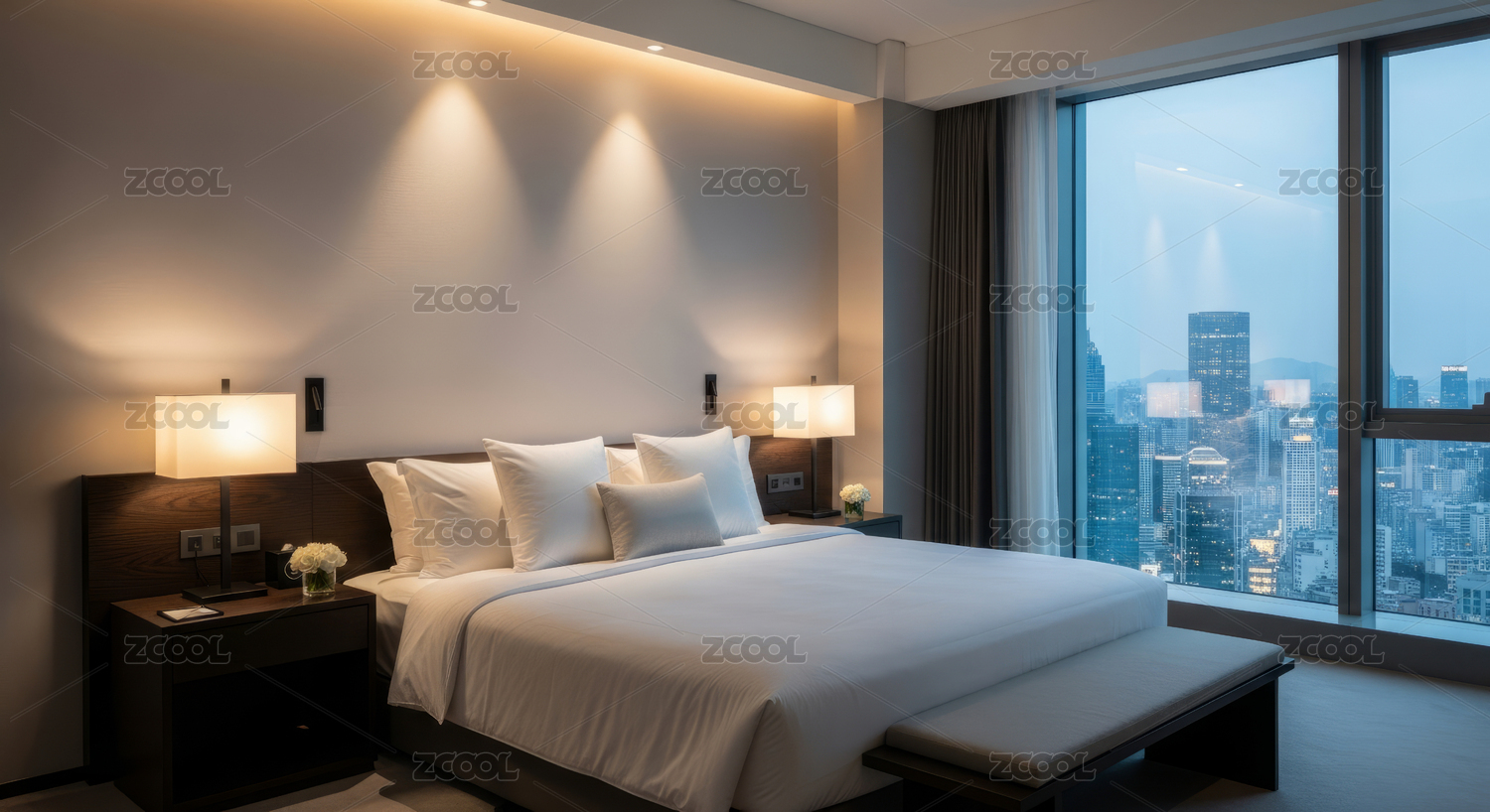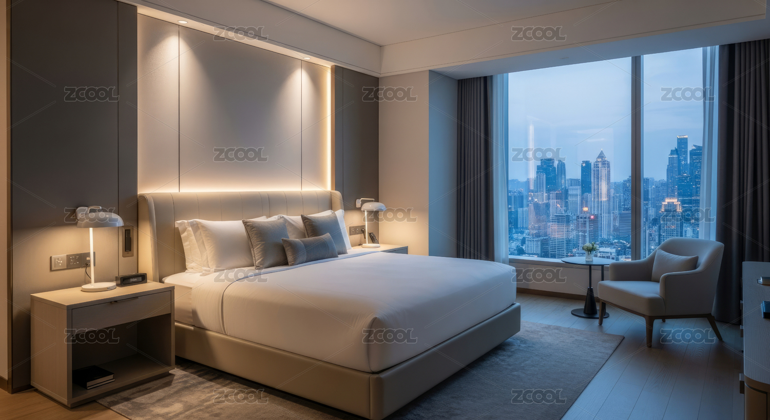简约, 床, 现代, 室内设计, 格调, 舒适,酒店套房, 灯光, 家具, 都市