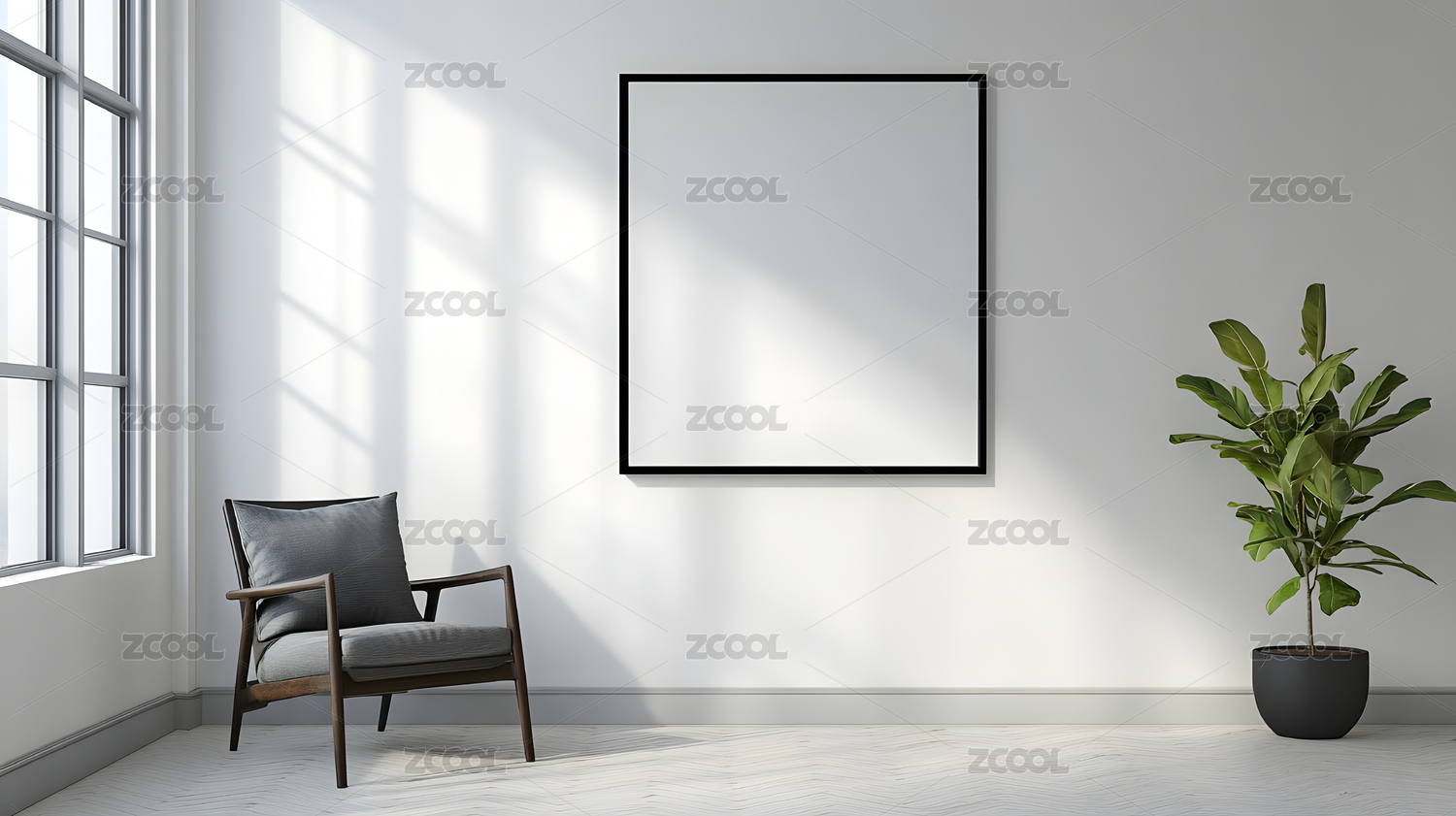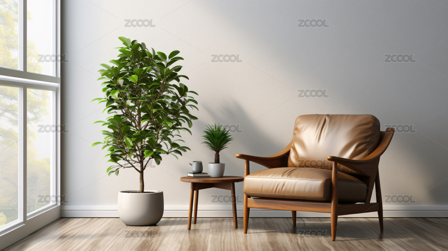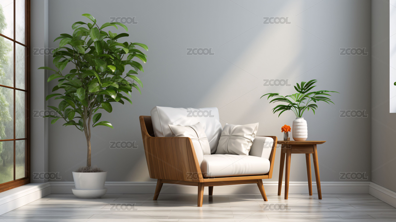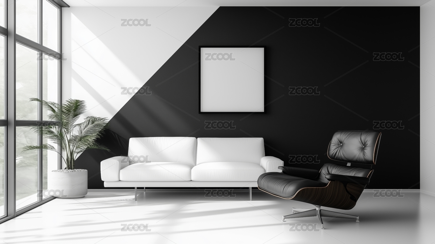 现代房间内部明亮干净设计沙发靠着墙壁背景