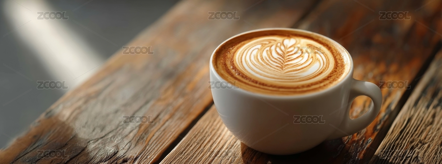 木桌上的一杯拉花咖啡