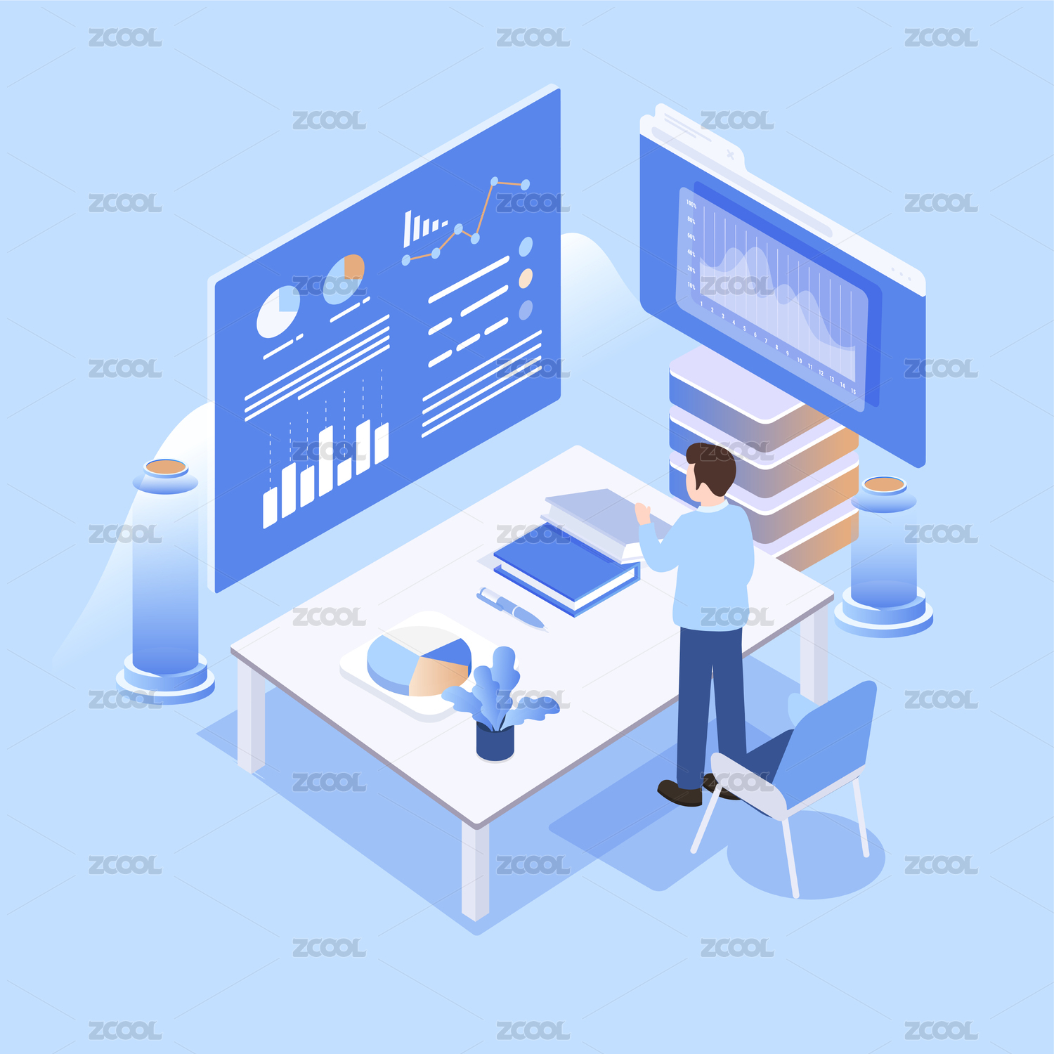 科技,金融,商务,立体,等轴,微立体,插画,数据,分析,人物