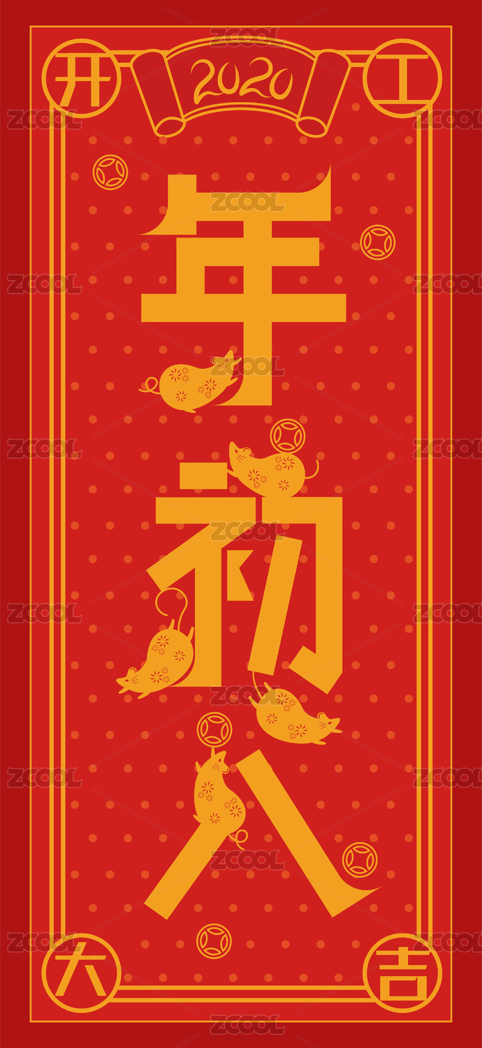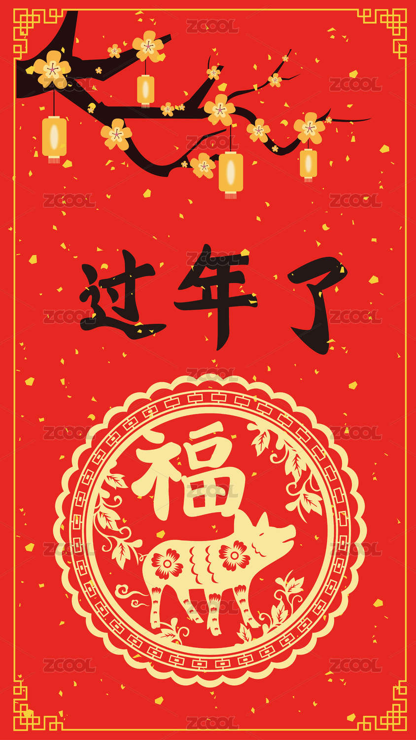 竖版喜庆新年国潮手写书法拜年祝福春联插画
