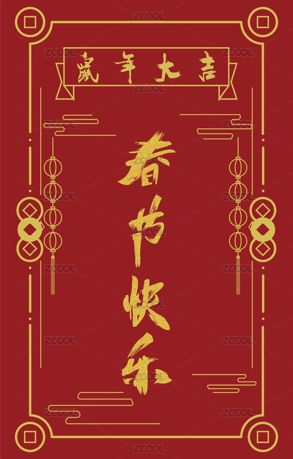中国文化,传统,插画,新年,书法,手写,春节,大气,成语,祝福
