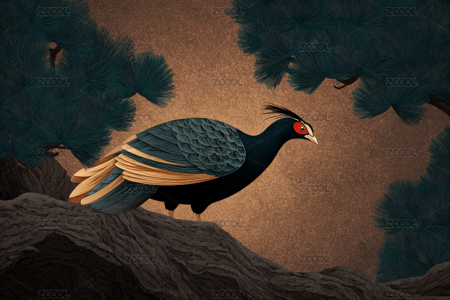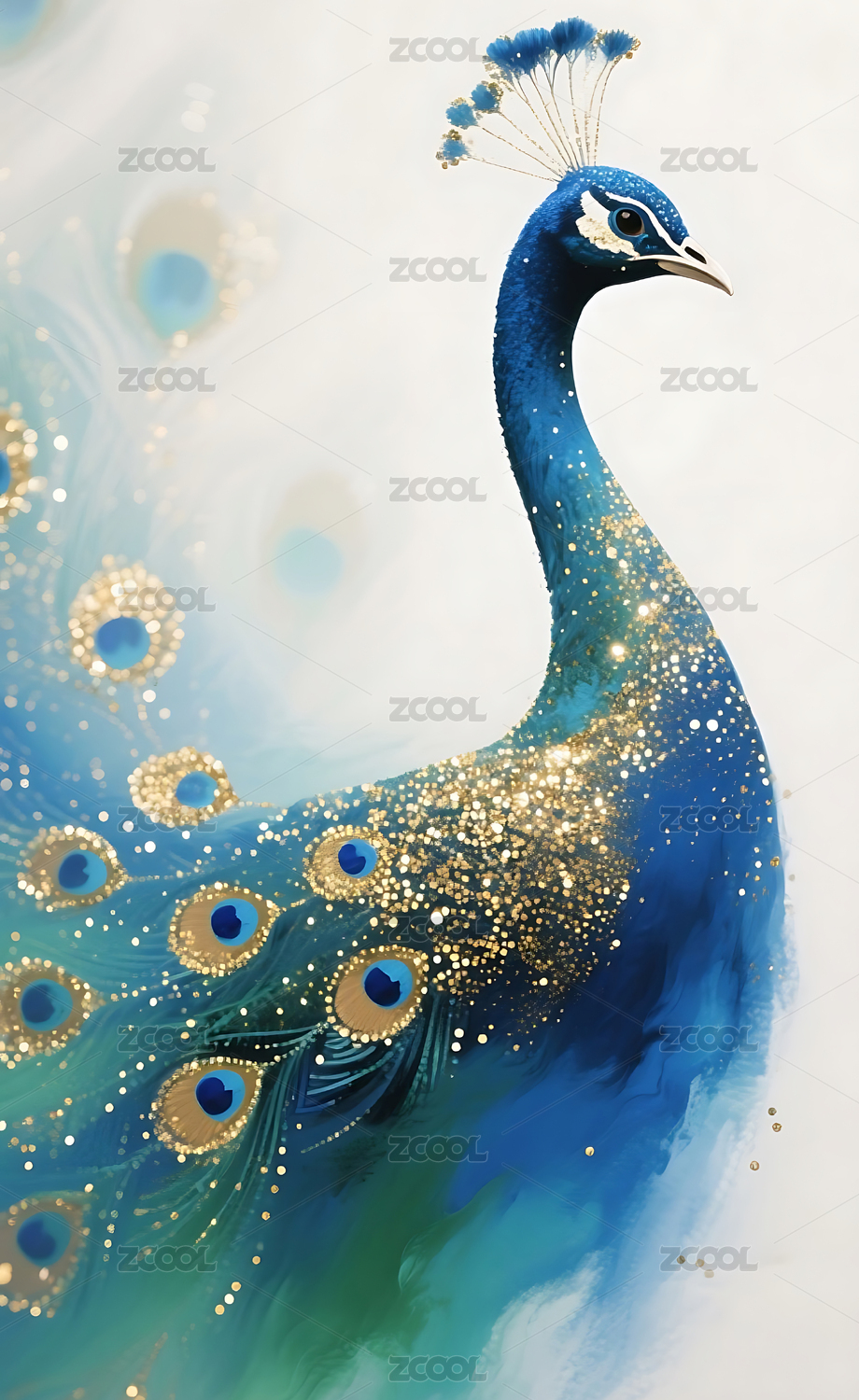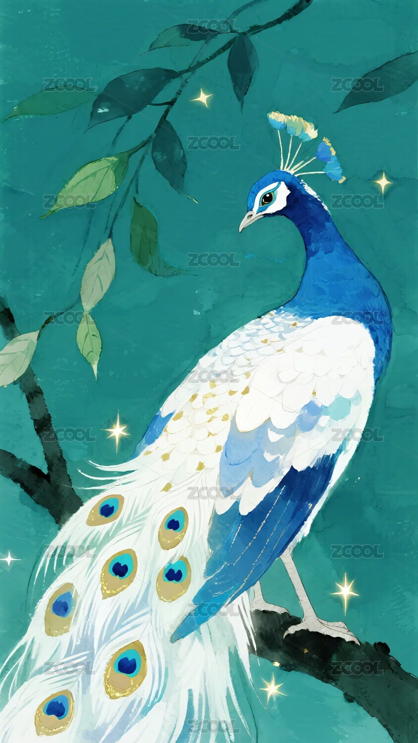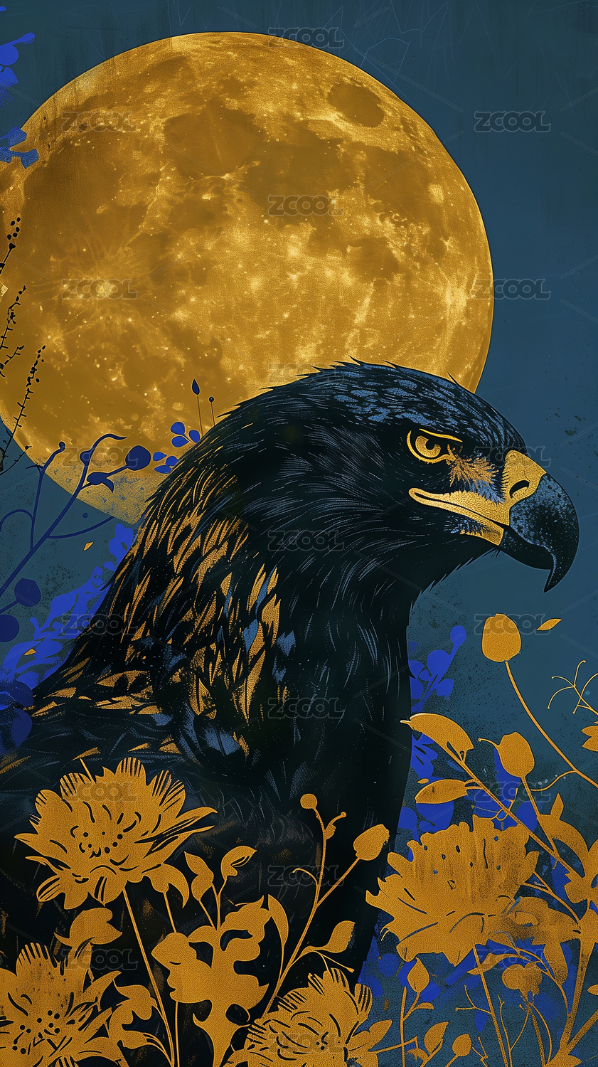 蓝金,插画,动物,细致,金箔,金色,月亮,情绪,壁纸,背景
