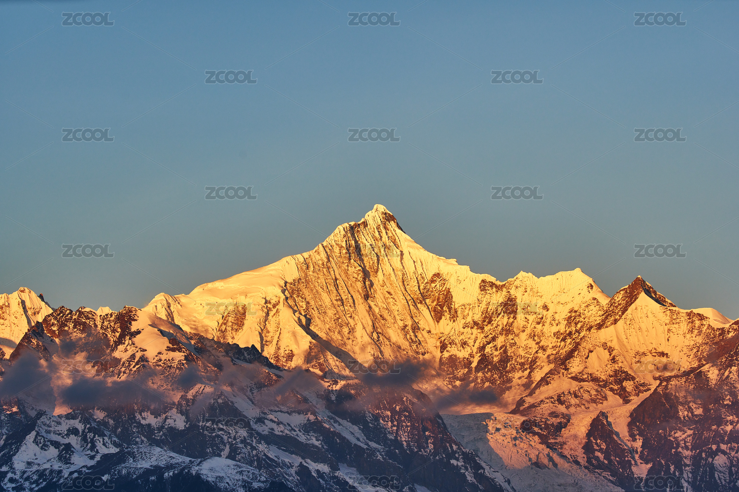 云南德钦梅里雪山卡瓦格博山峰与蓝天