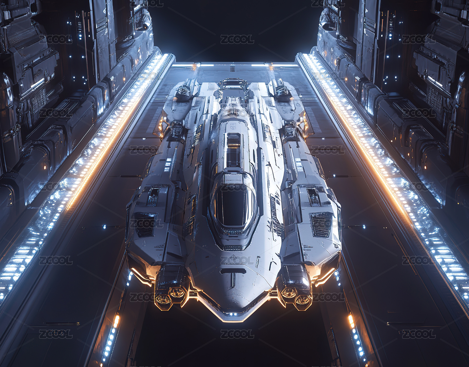 灯光,未来主义,飞船,概念设计,酷炫,科幻,风格,银色,金属质感,橙色