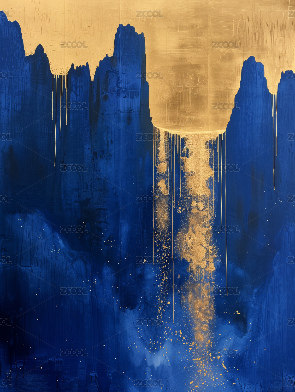 抽象金粉瀑布写意画