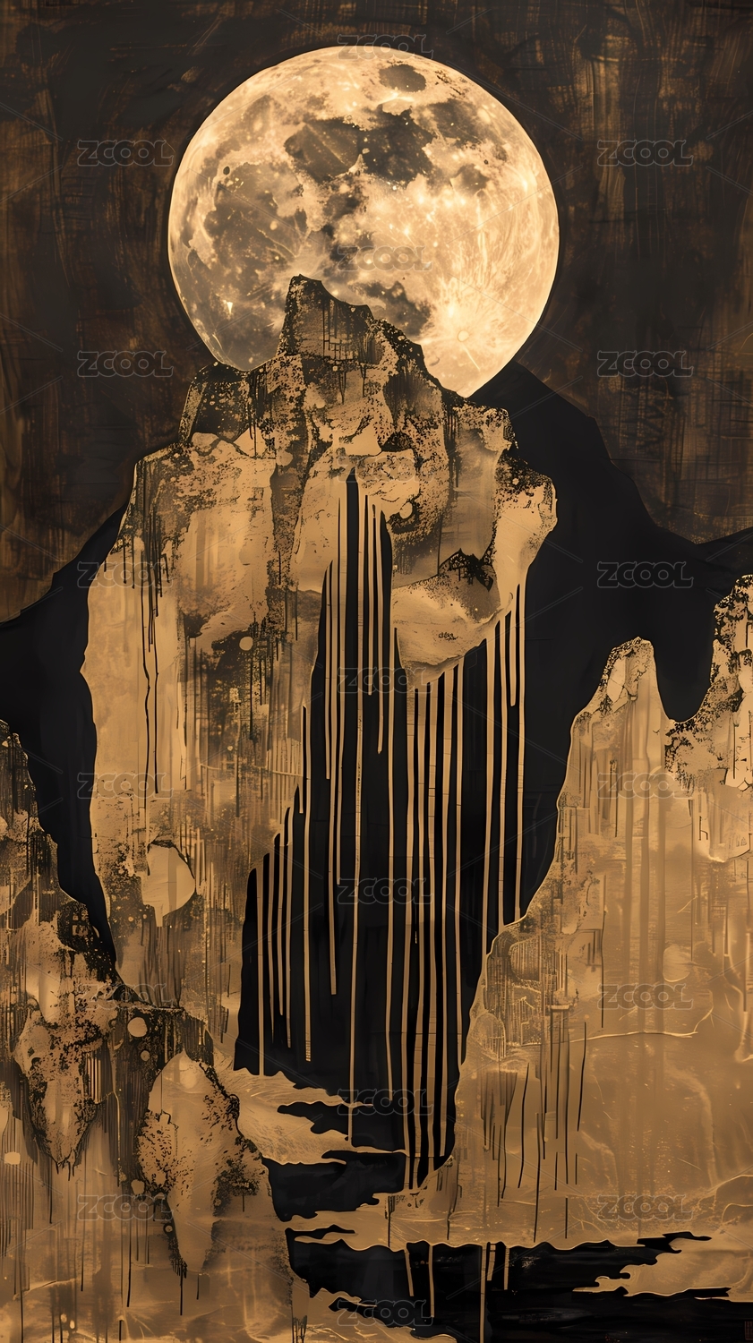 中国风暗黑风格山水画