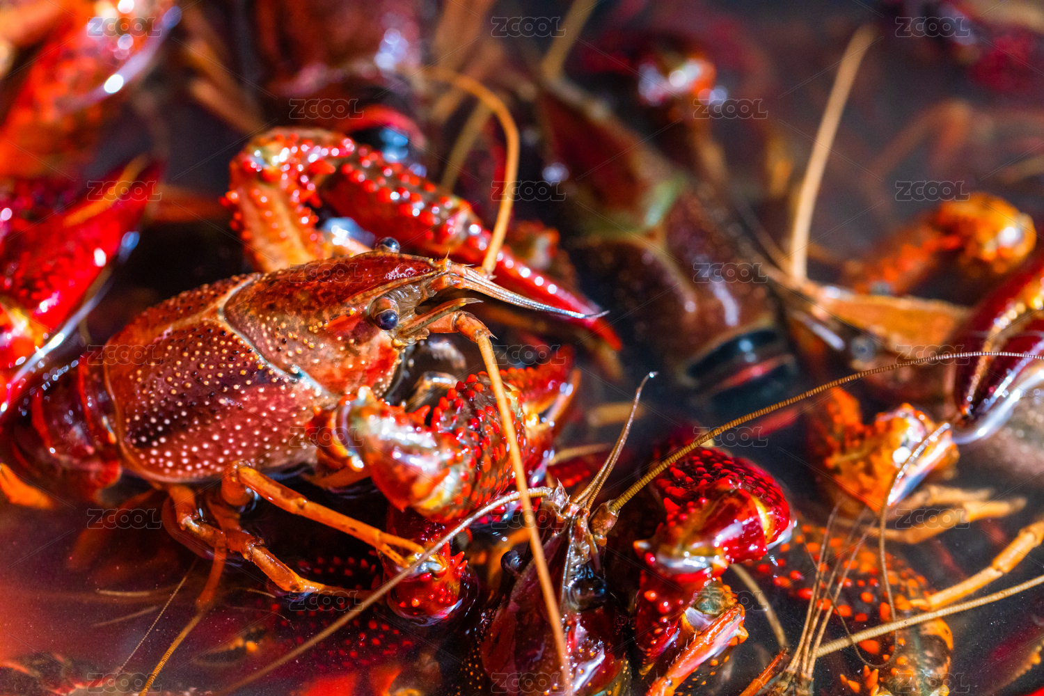 新鲜活的小龙虾特写