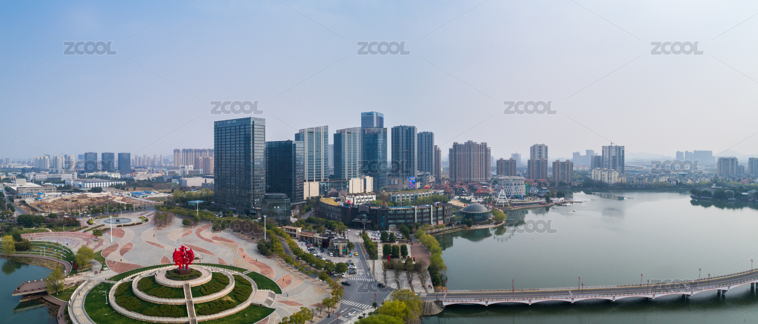 航拍郑州郑东新区北龙湖金融岛人工湖心岛