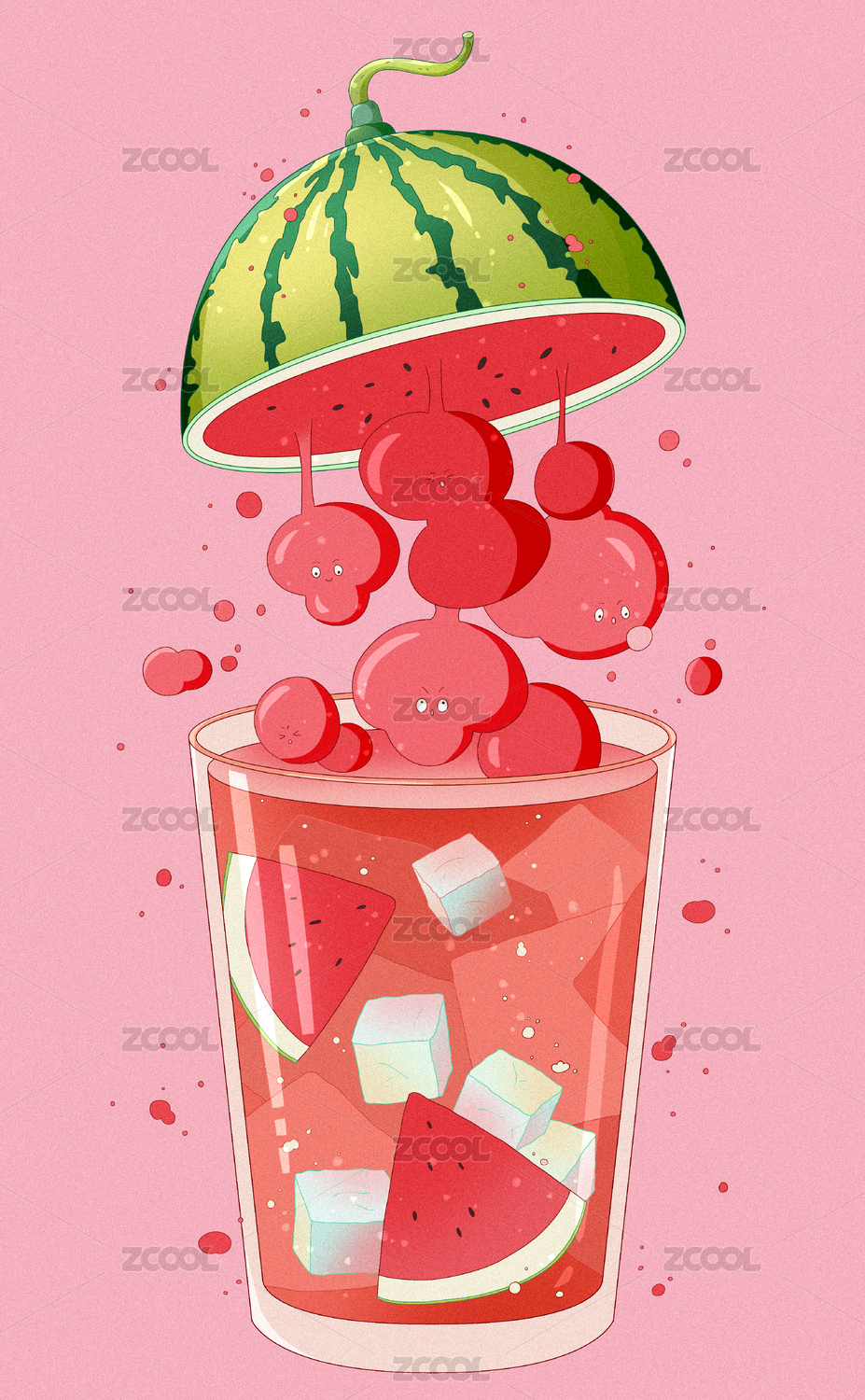 小清新扁平风夏季饮料西瓜汁插画