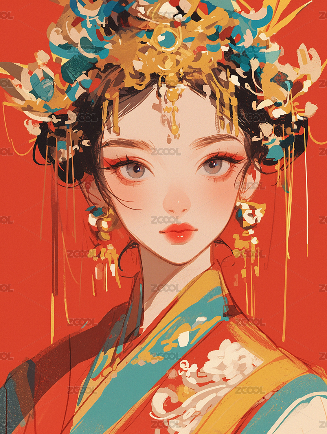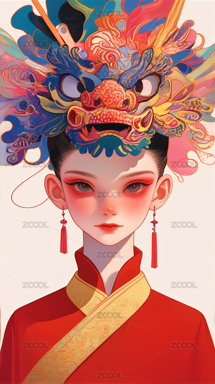 背景,插画,彩色,精美,头饰,古风,少女