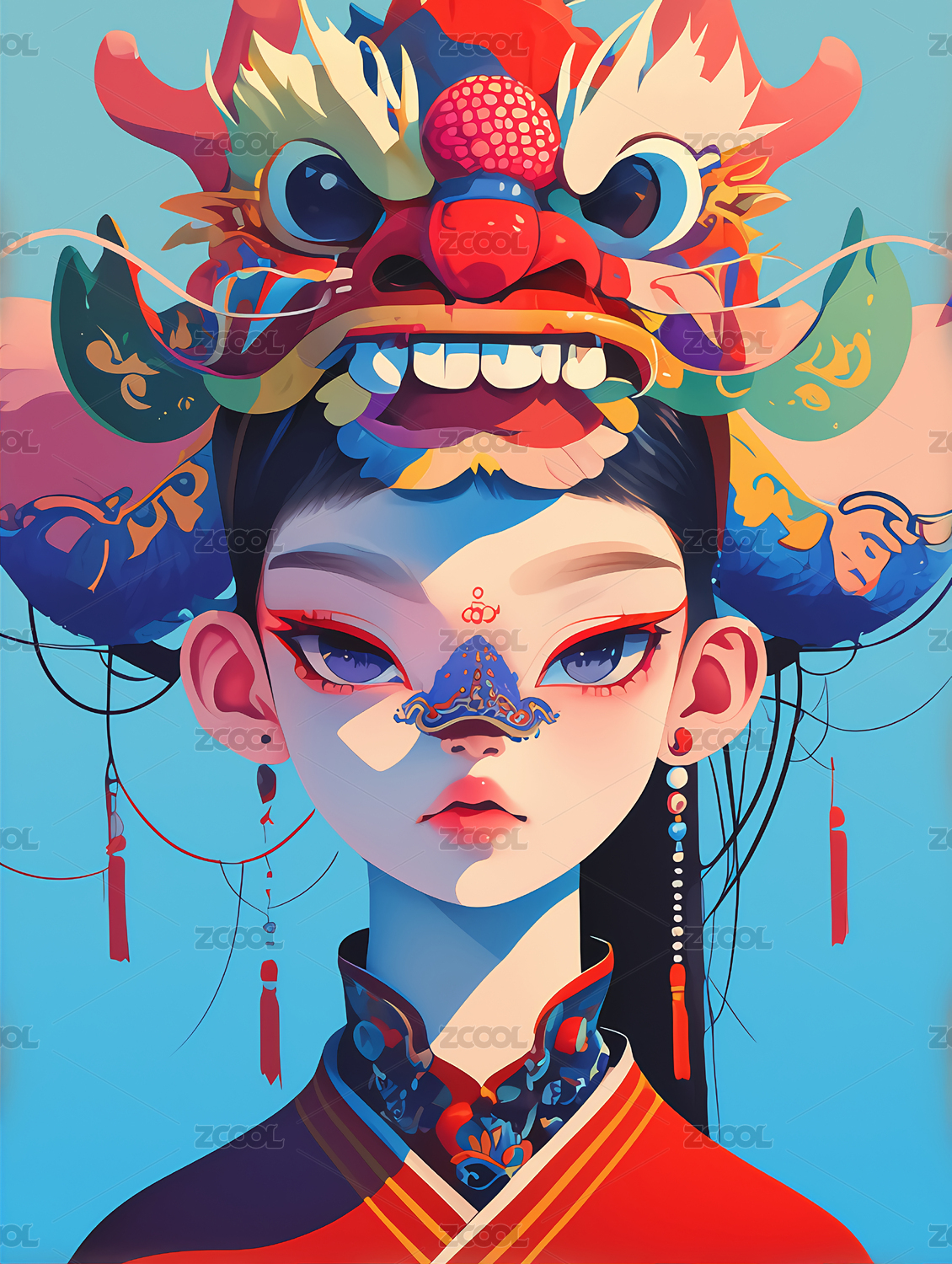 插画民族服饰国风珠宝首饰可爱女孩手绘风