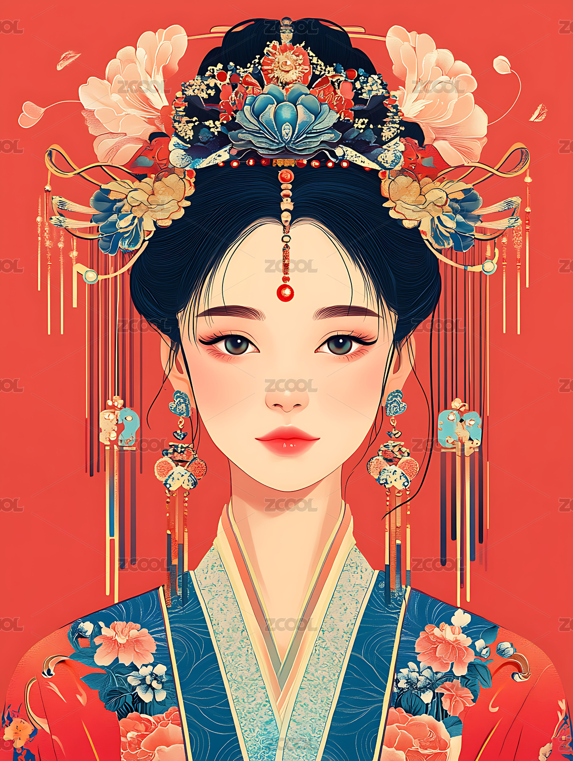 戴精美头饰的古风美女插画
