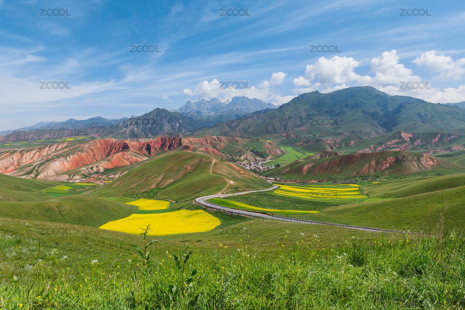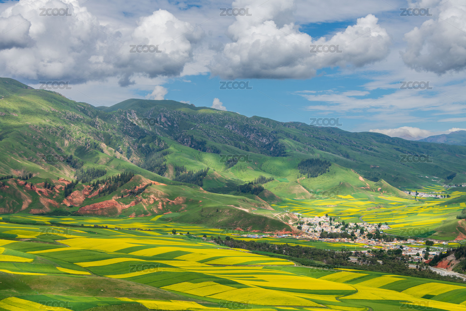卓尔山,祁连山脉,油菜花,光影,绿色,大自然,美丽,景区,风光
