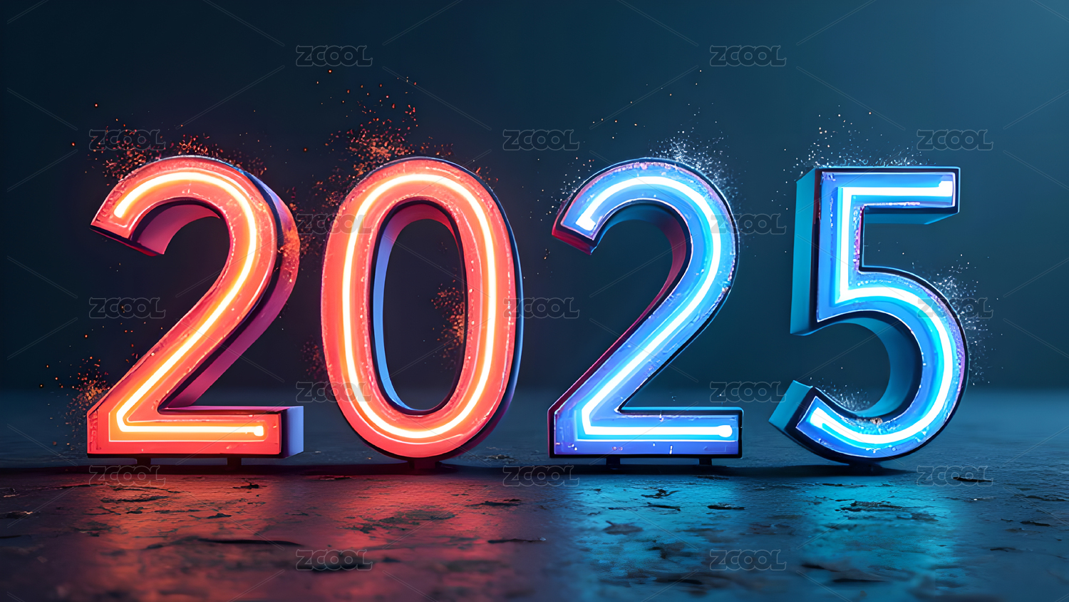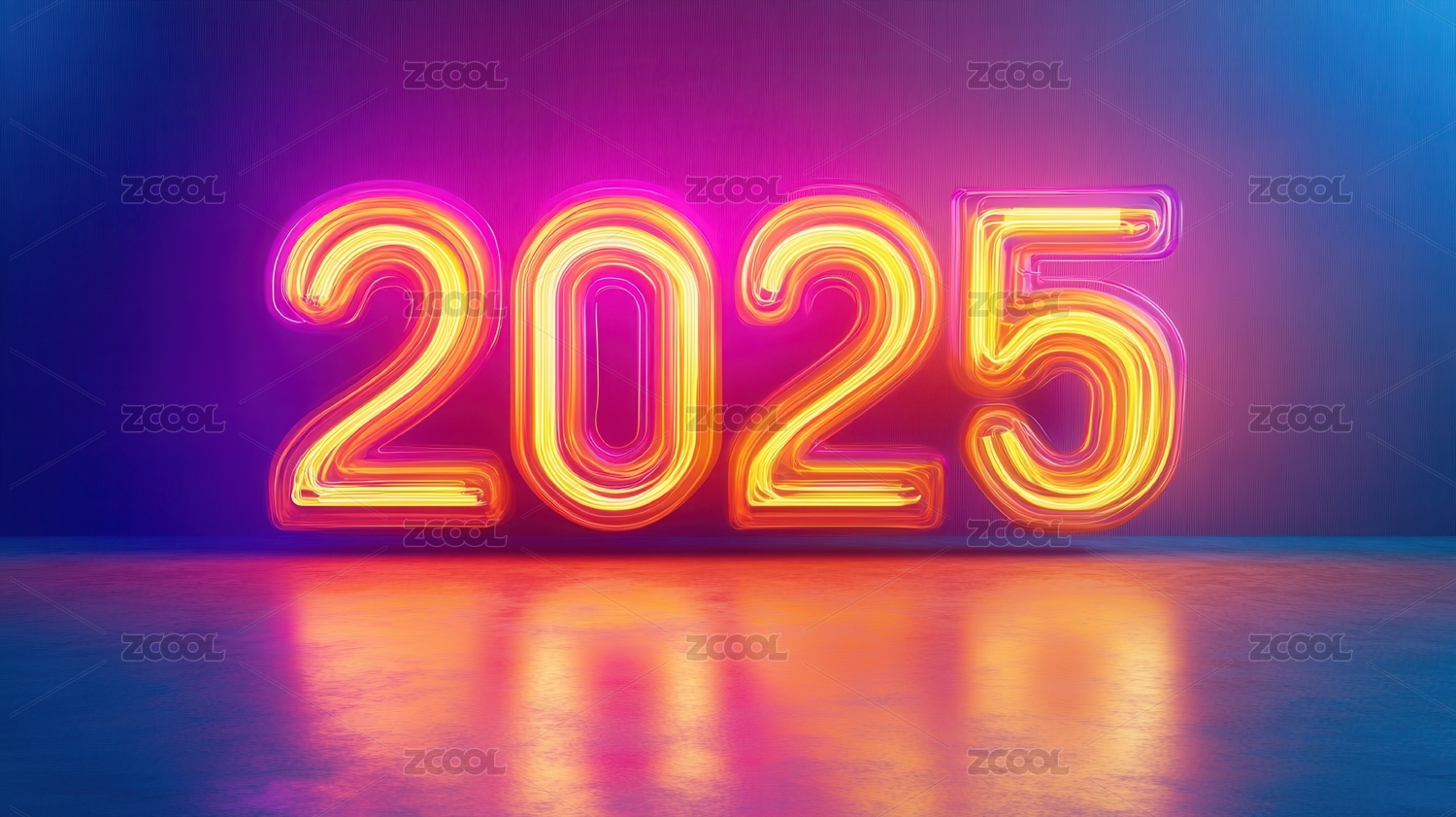 3D,字体,2025,新年,素材,跨年,日历,彩色,霓虹灯