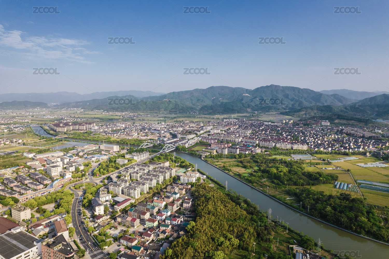 航拍秋日傍晚浙江上虞丁宅乡山村美景