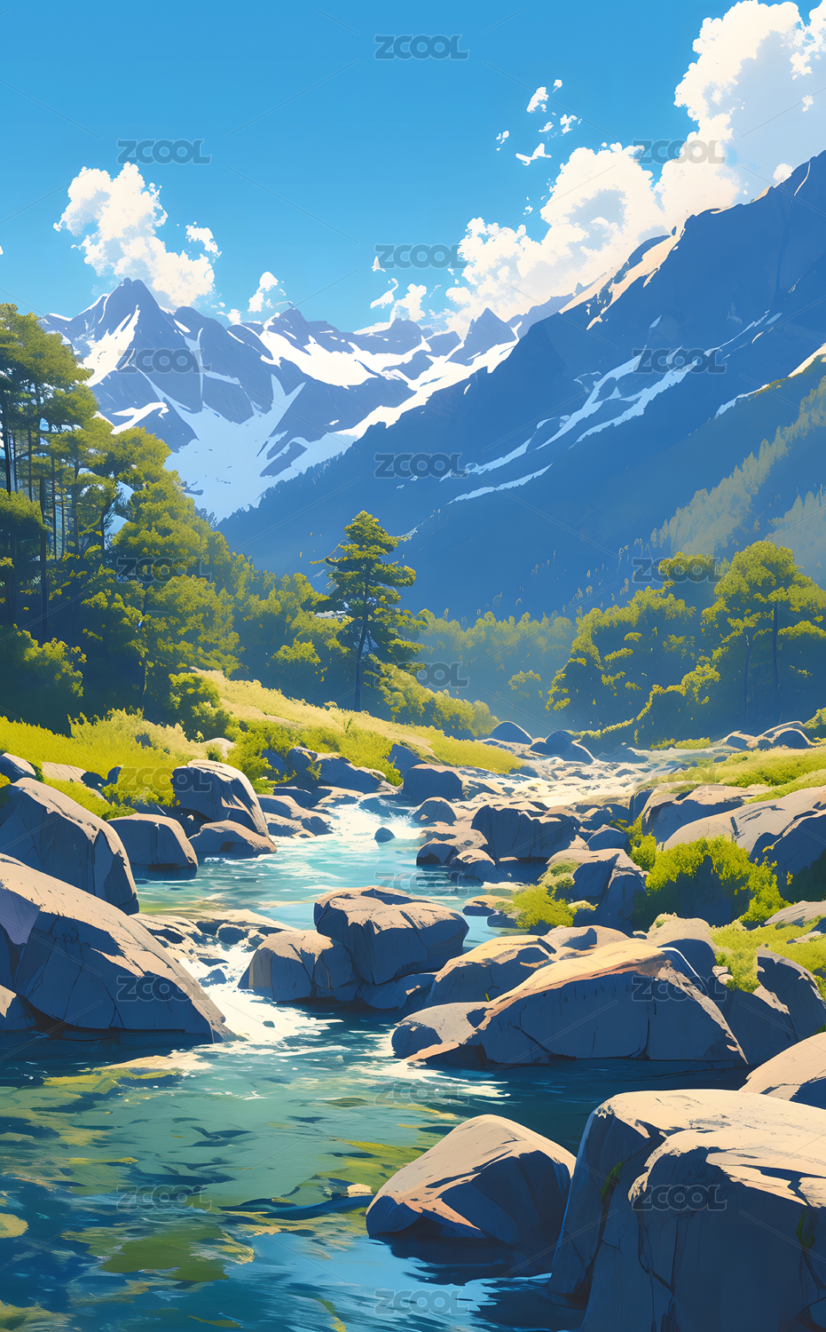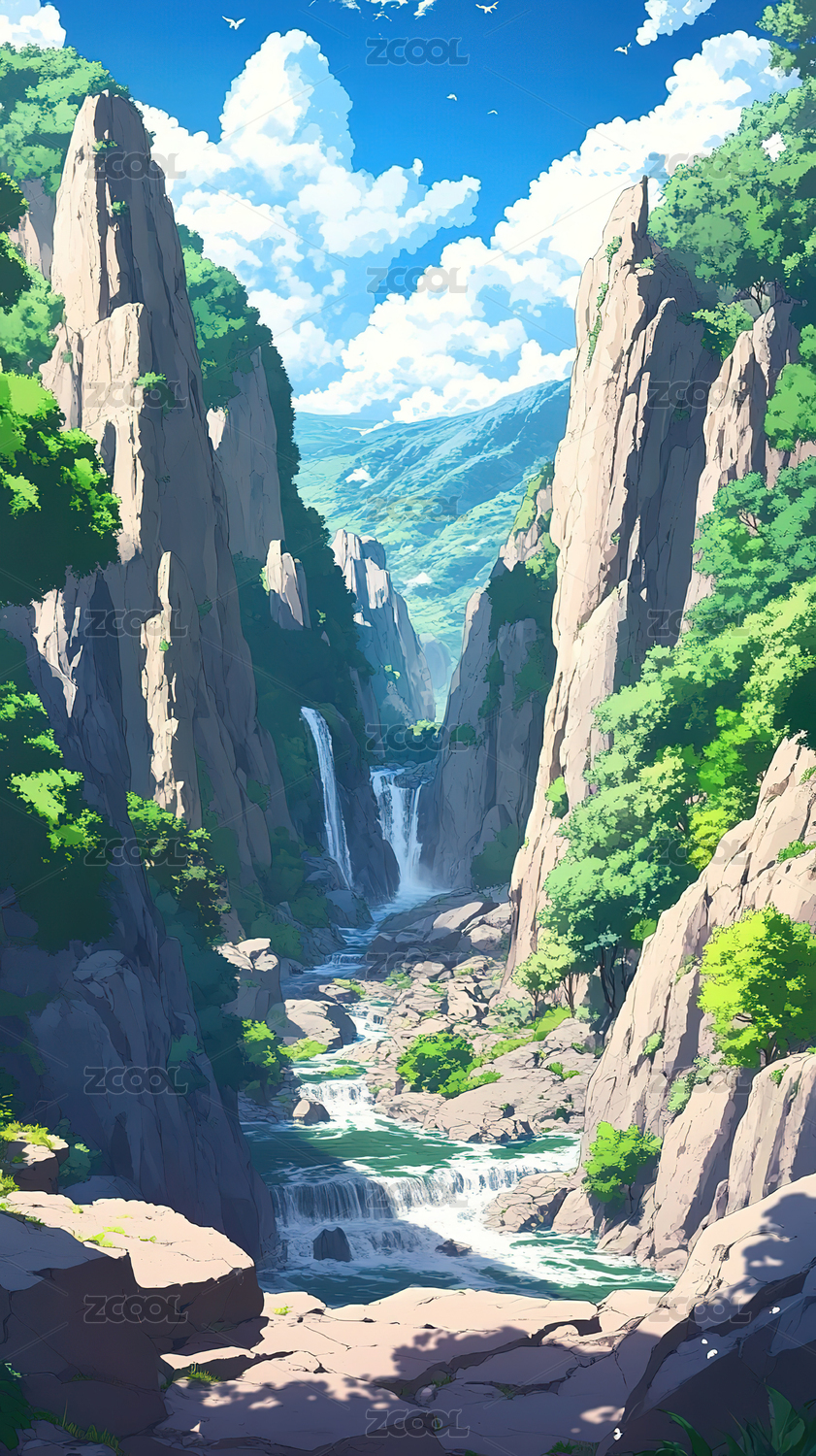 山间溪流插画