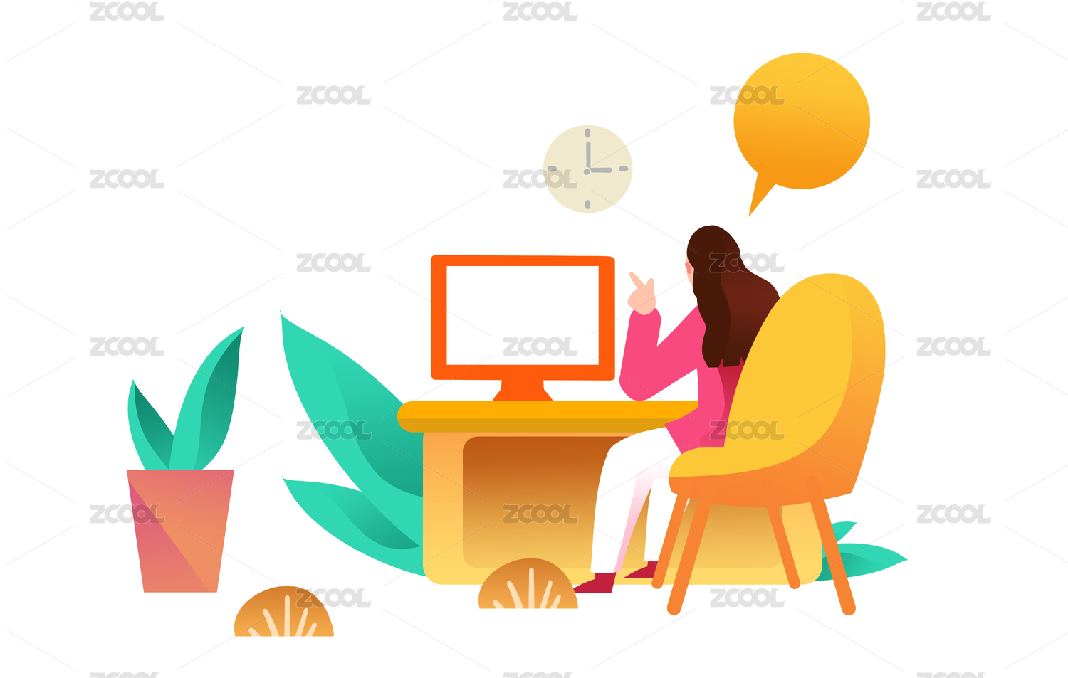 女性商务办公灵感插画