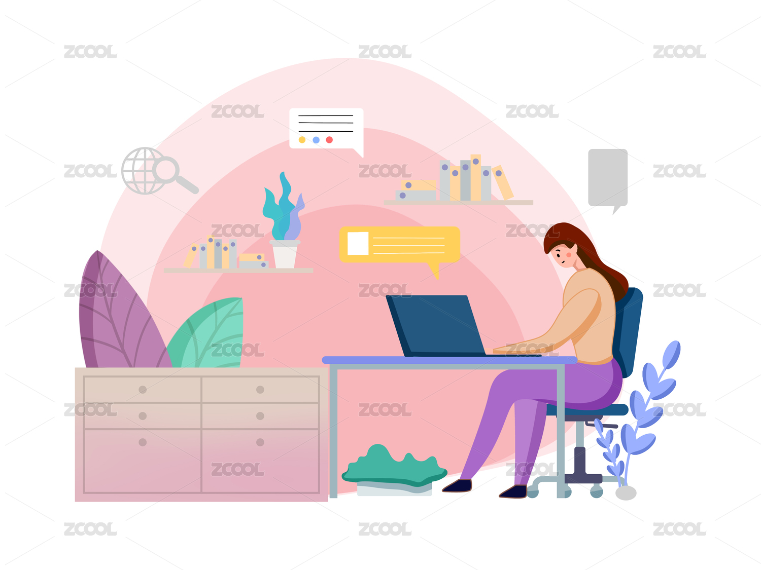 办公室居家办公学习扁平插画