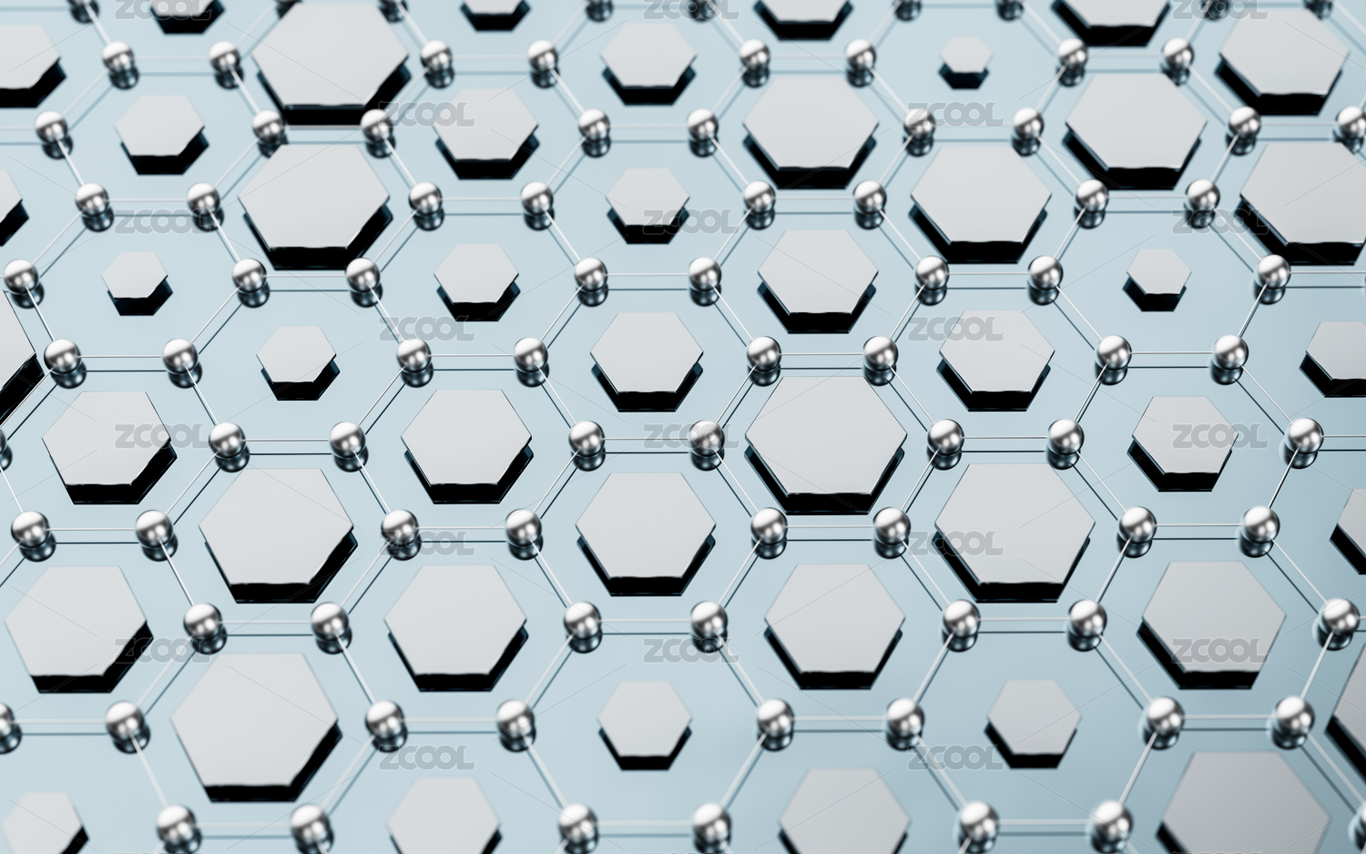 银色六边形石墨烯网格结构