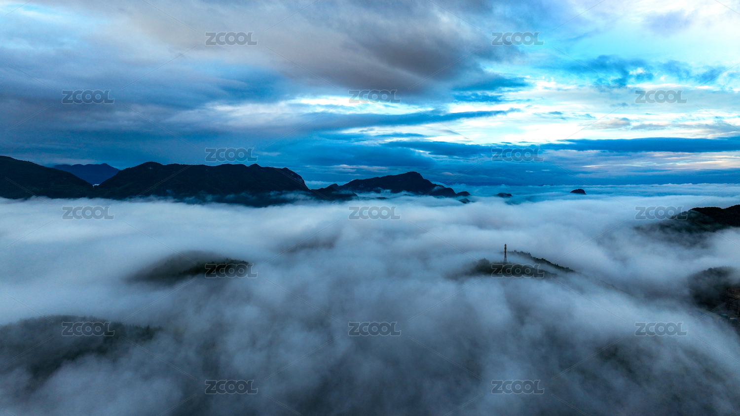 四川宜宾横江古镇清晨云雾缭绕的山脉