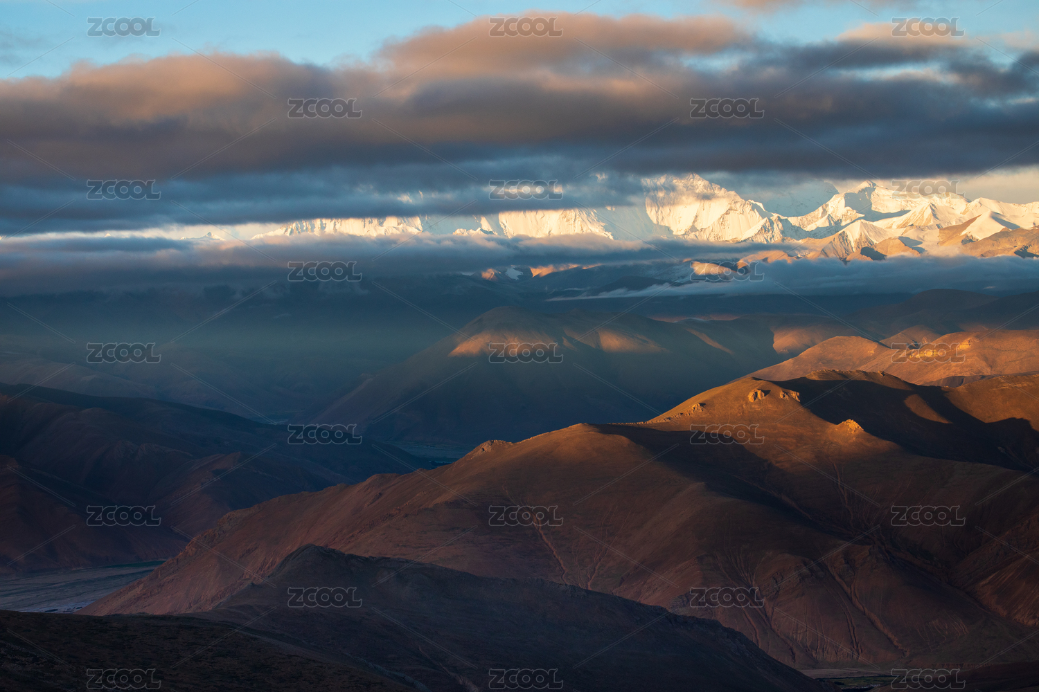 中国西藏加乌拉山口雪山远观8000米级雪山群